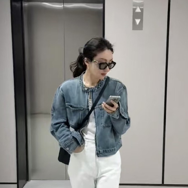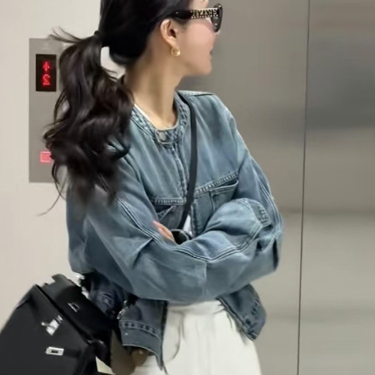 牛仔外套女2025春季新款欧洲站女装宽松百搭减龄圆领长袖开衫上衣