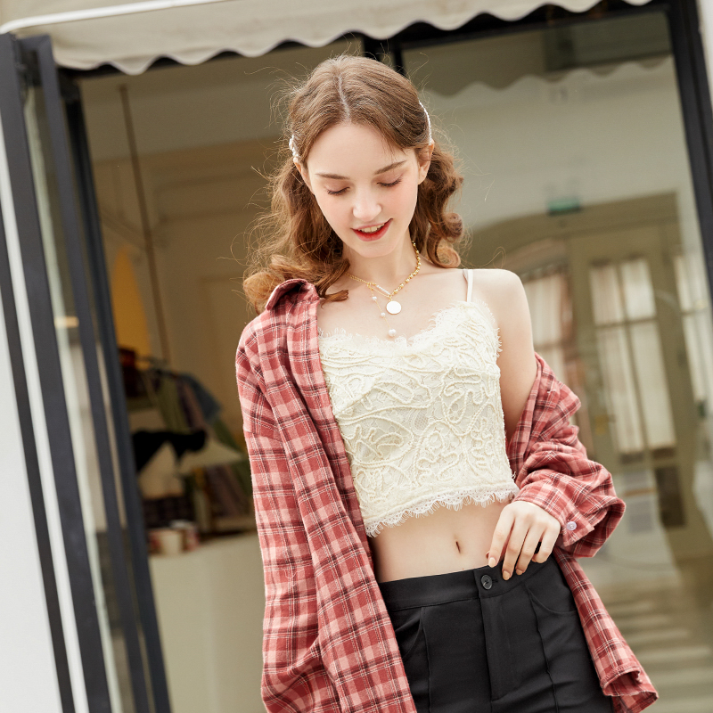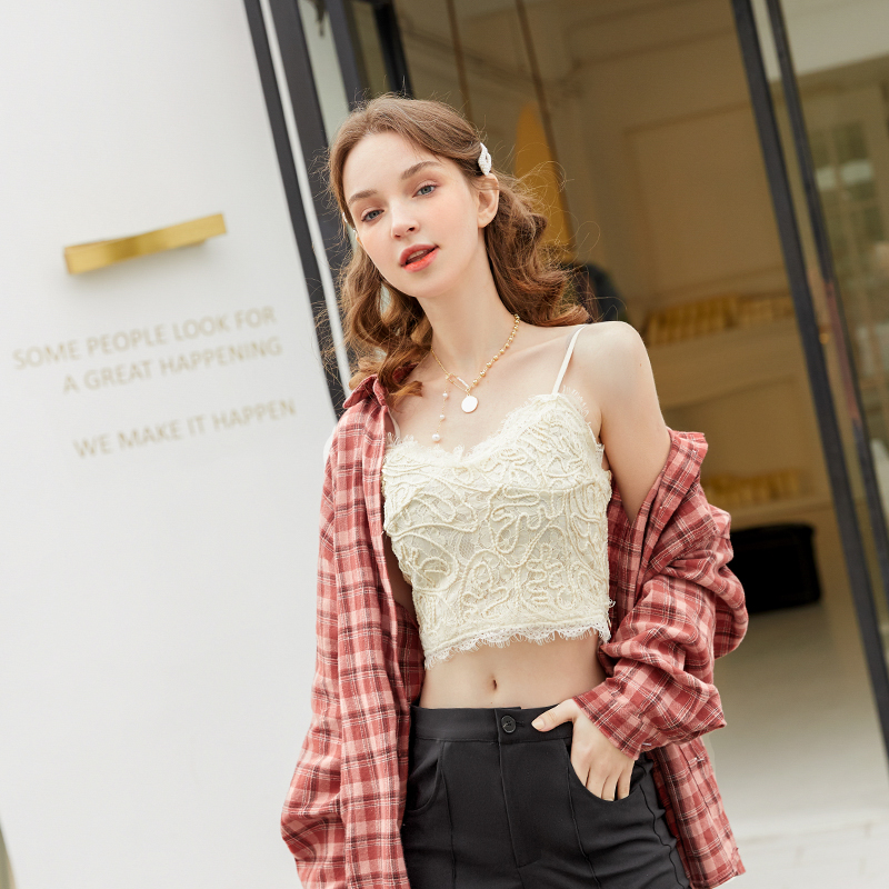 zklin法式鱼骨蕾丝镂空吊带小背心女西装内搭外穿打底短款上衣夏