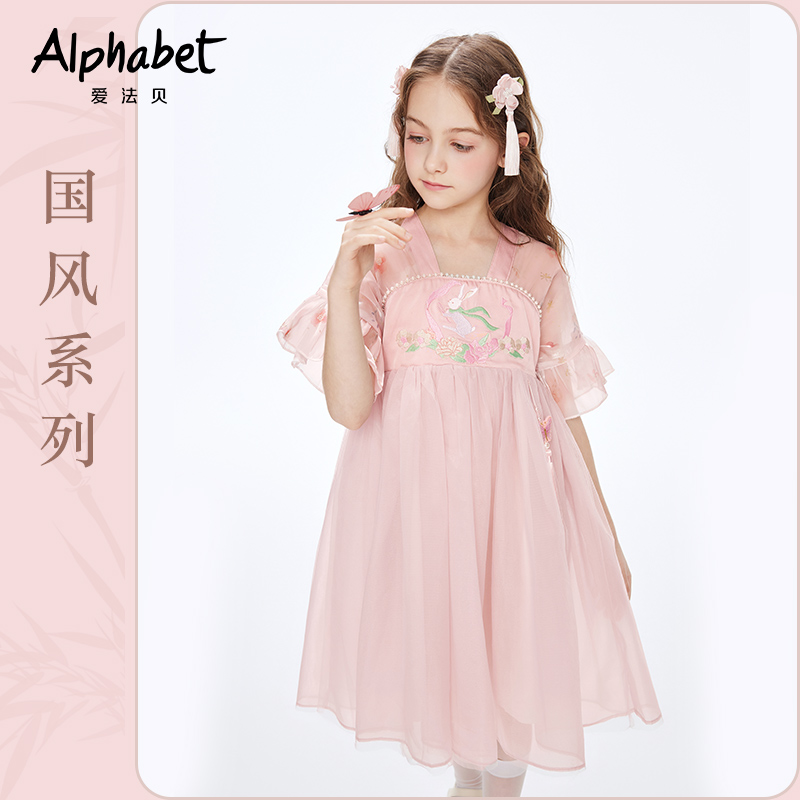 爱法贝2025夏季新款新中式女童连衣裙汉服中大儿童装国风洋气裙子