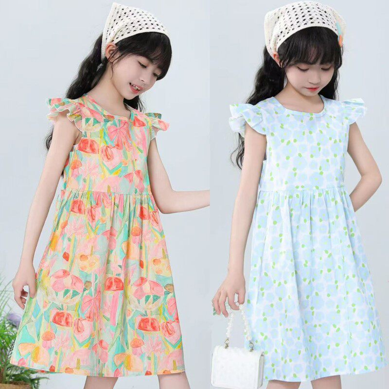 儿童连衣裙夏季纯棉公主裙女童韩版洋气田园碎花沙滩裙无袖背心裙