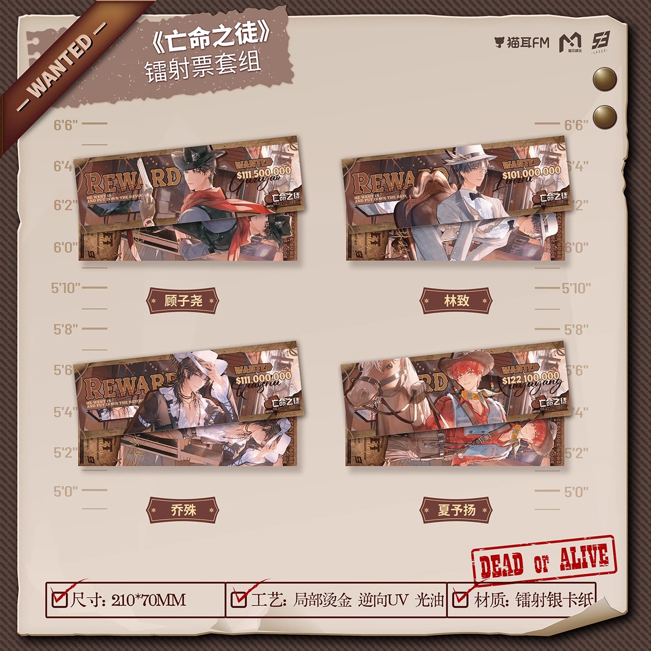猫耳FM 正品LASER《亡命之徒》系列周边马口铁徽章色纸立牌镭射票