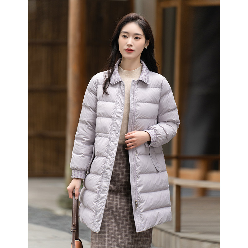 纻衣紫色复古羽绒棉服女2025冬装新品拼接棉衣设计感长款加厚外套