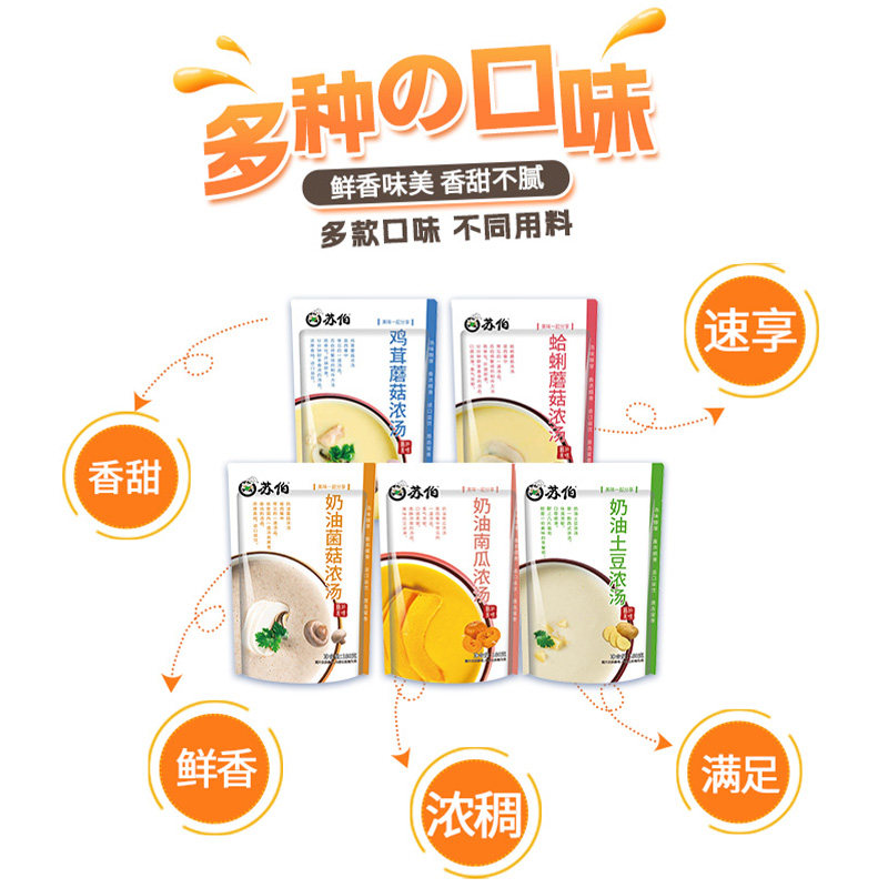 苏伯浓汤袋装家用早餐法式蛤蜊蘑菇汤免煮代餐奶油南瓜浓汤速食汤