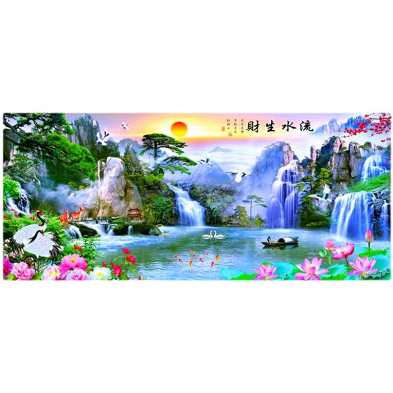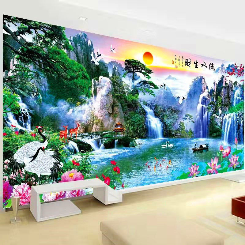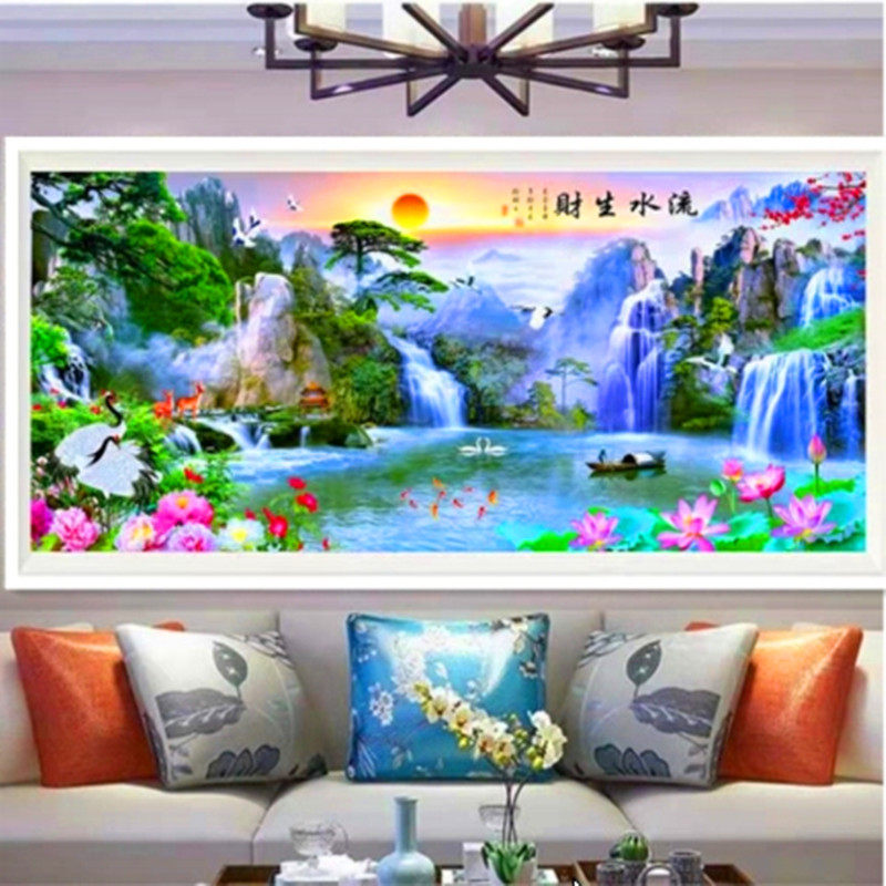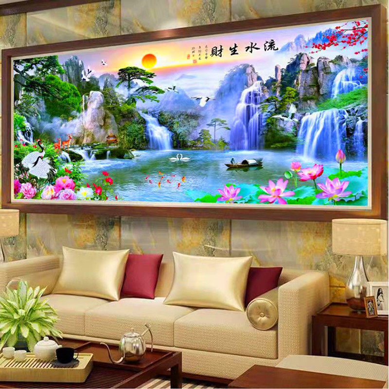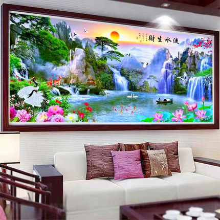 穿珠子绣流水生财客厅风景满珠绣