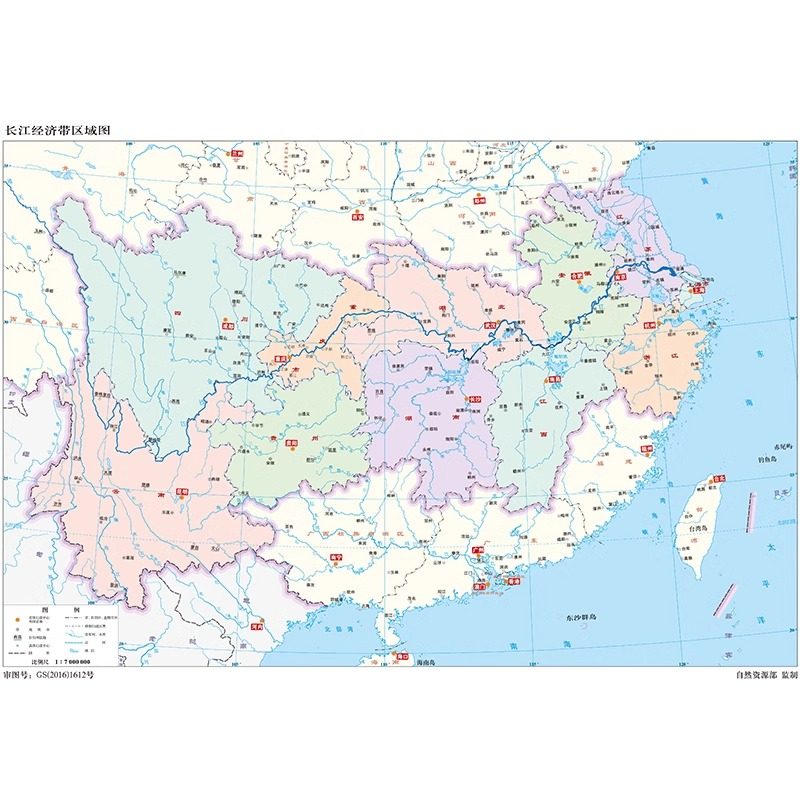 长江流域经济带区域城市示意地图长江水系航运图装饰画墙贴带背胶