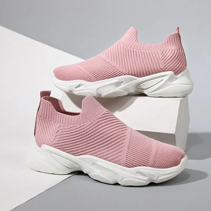 一脚蹬懒人鞋女网面飞织鞋透气弹力运动休闲鞋夏季百搭单鞋袜子鞋