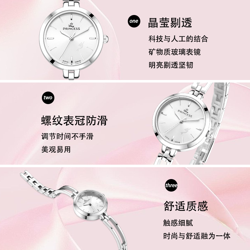 迪士尼简约手表女款轻奢小众高级感满钻小巧精致正品学生百搭女表