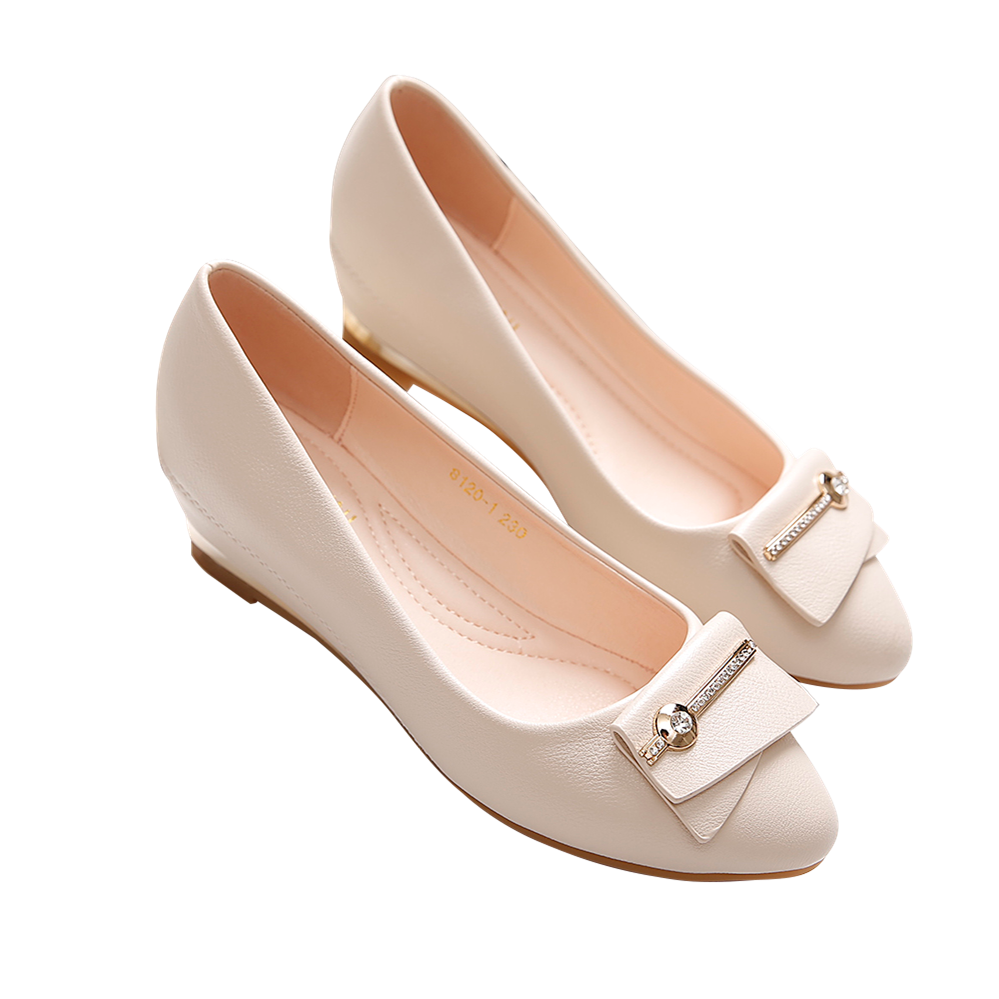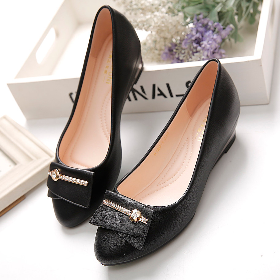 坡跟豆豆鞋女2026新款圆头浅口内增高单鞋软皮软底防滑中年妈妈鞋