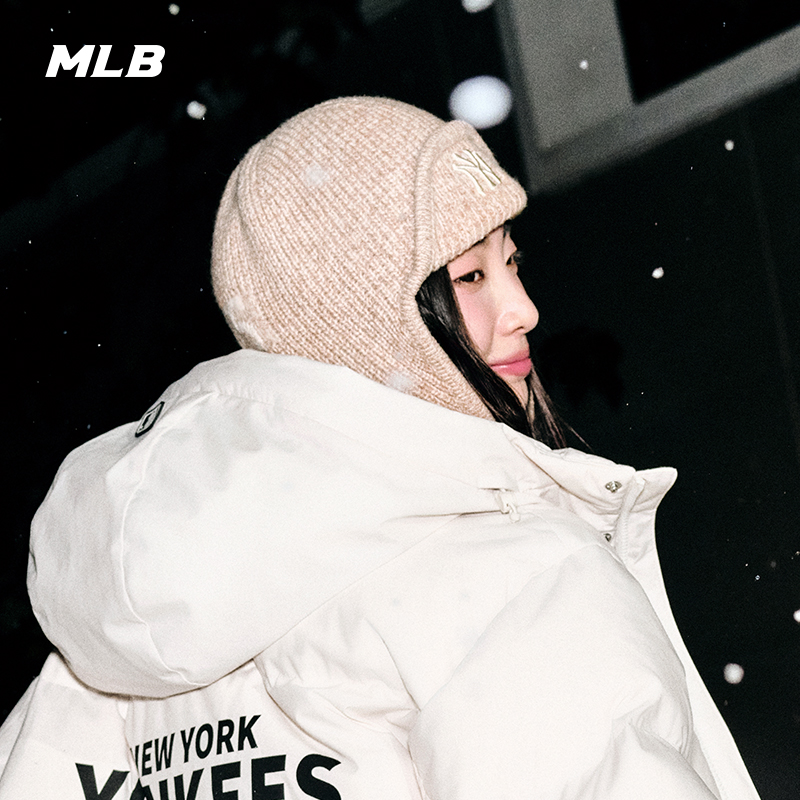 MLB官方 男女情侣学院风保暖时尚百搭护耳针织帽25冬季新款BNV03