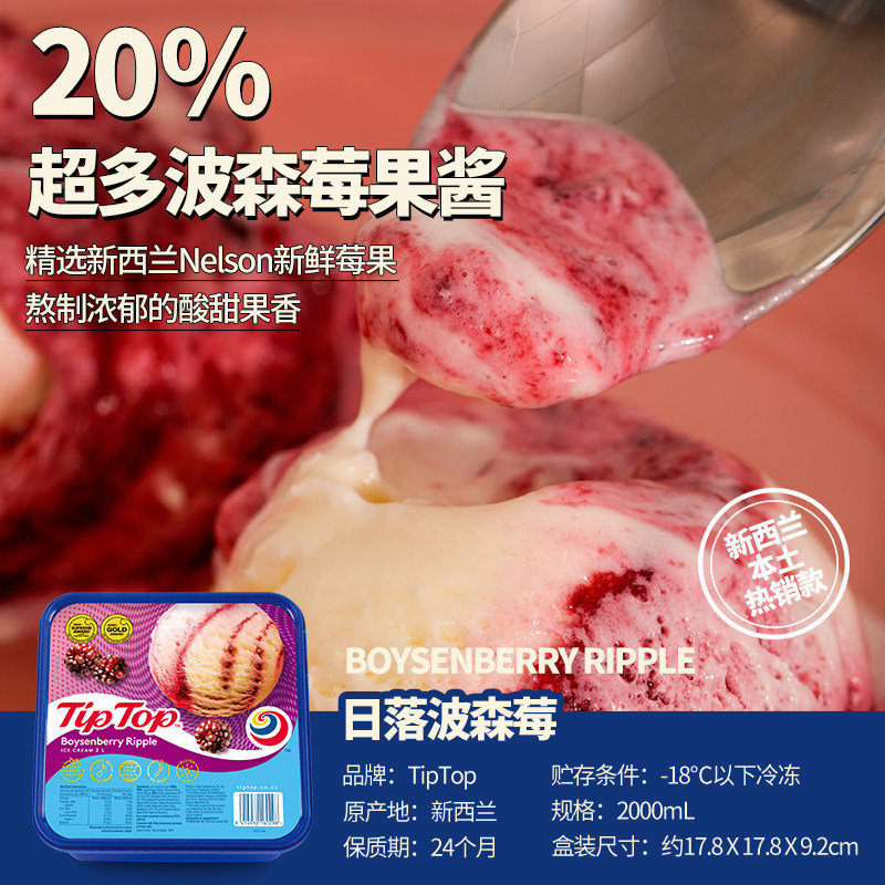 tiptop新西兰进口波森莓冰淇淋盒装网红鲜奶冰激凌水果味大桶雪糕
