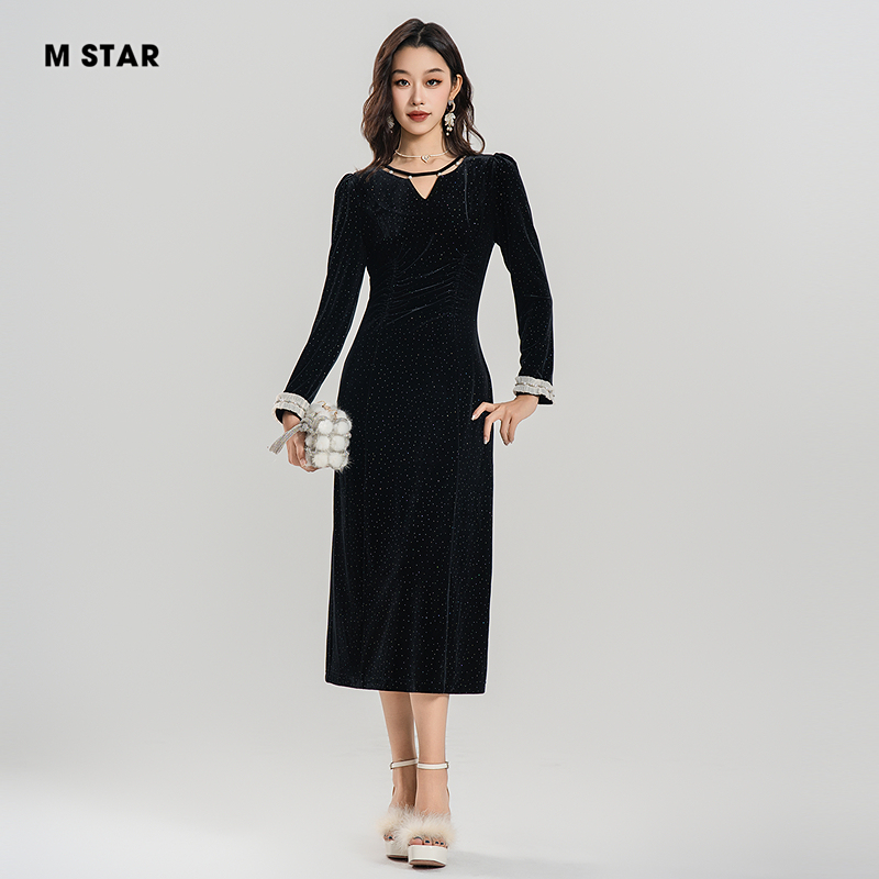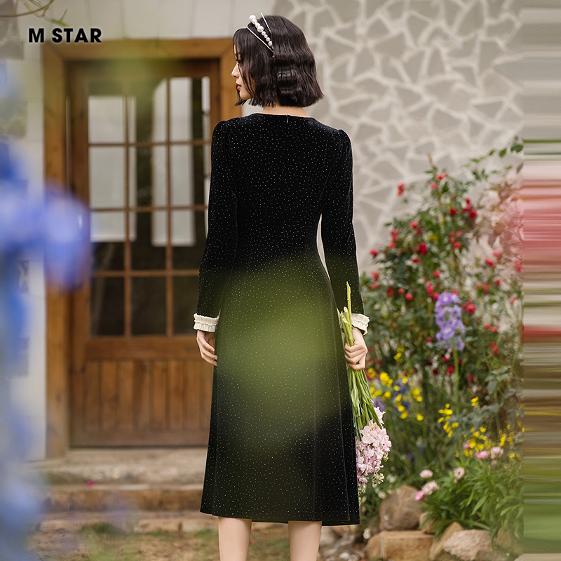 M STAR秋季新款挂脖提花连衣裙显瘦裙子显瘦女士气质休闲时尚百搭
