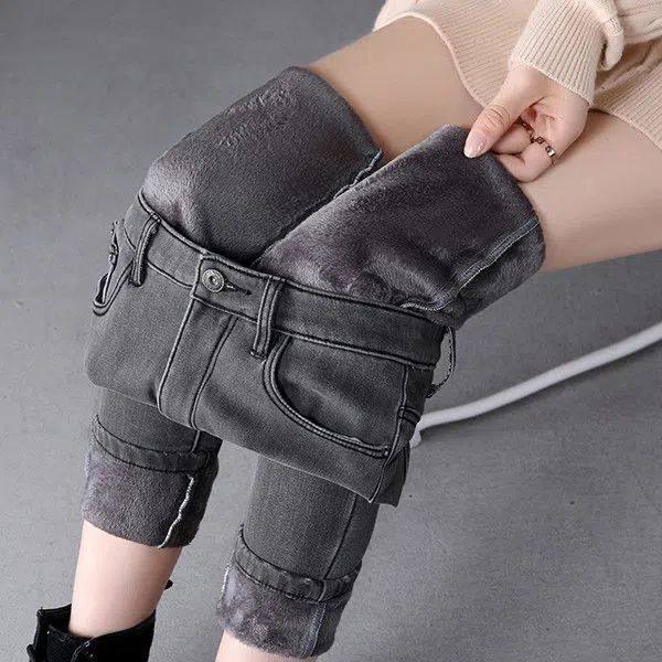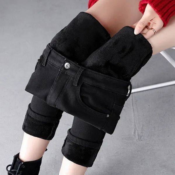 铅笔裤长裤加绒牛仔裤2022年冬季