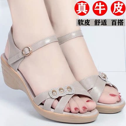 妈妈凉鞋女中老年凉皮鞋牛皮大码