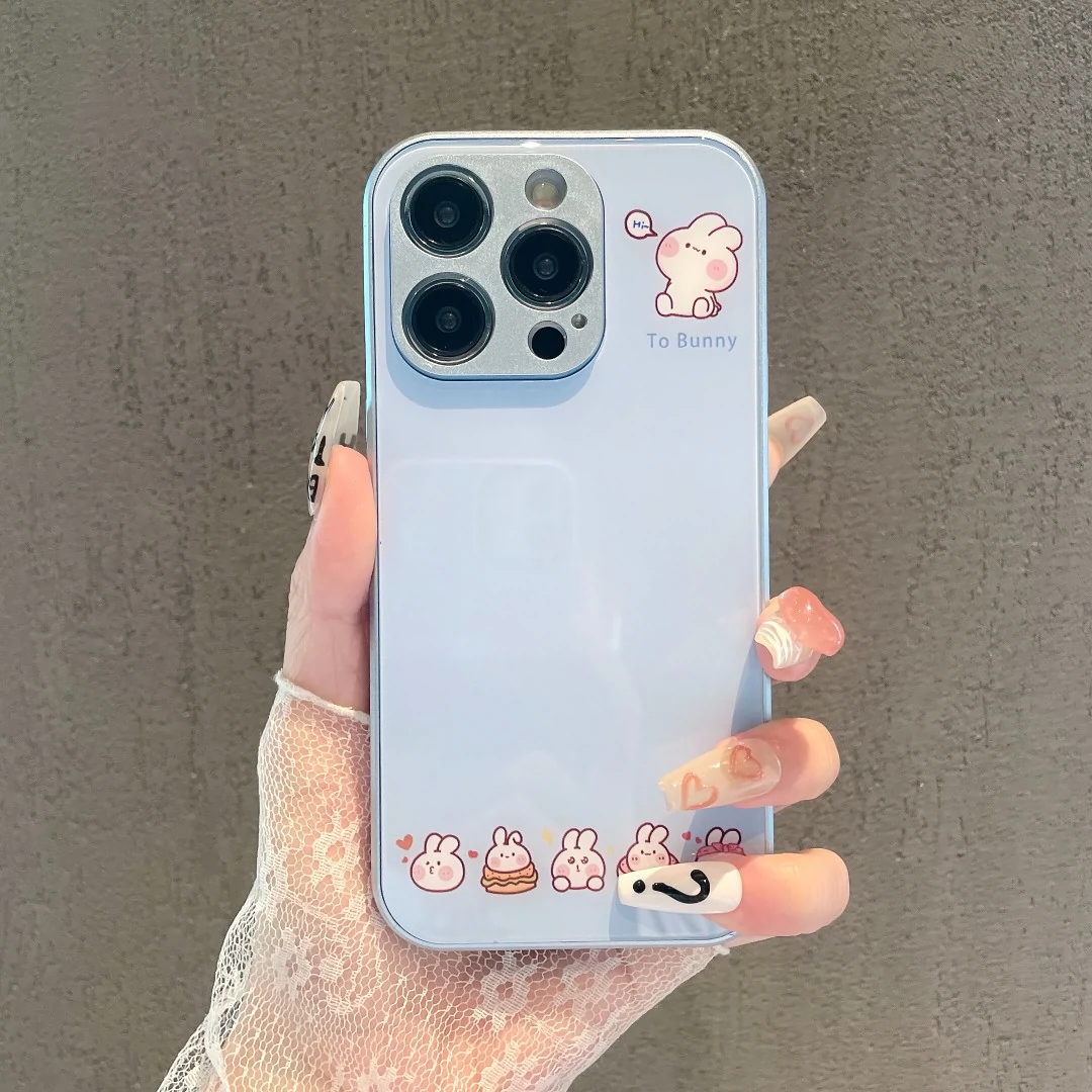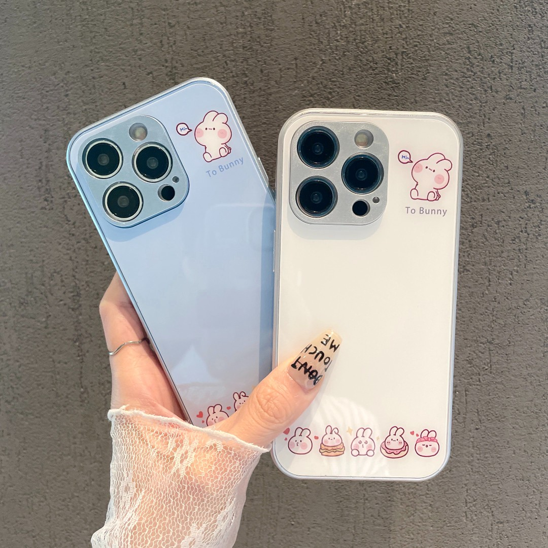 适用于苹果15Pro手机壳iPhone13mini新款12金属漆14玻璃11卡通XSMax简约6SPlus卖萌兔子7全包边8防摔壳