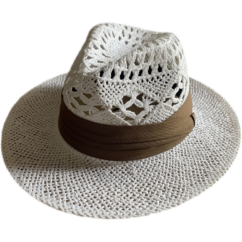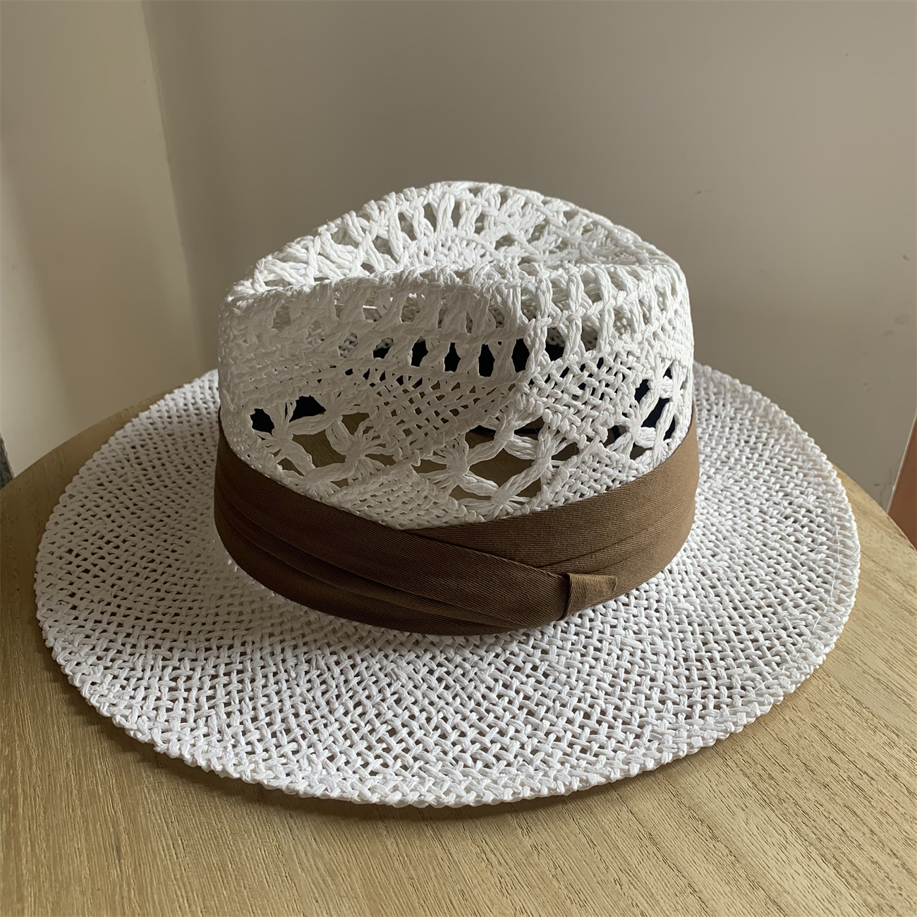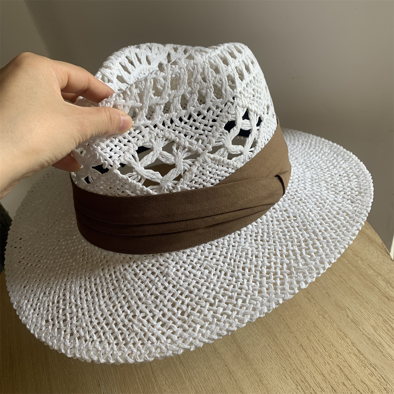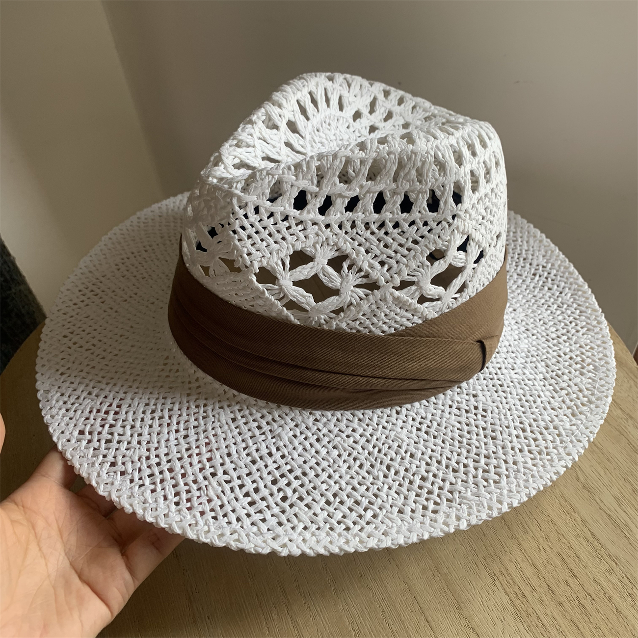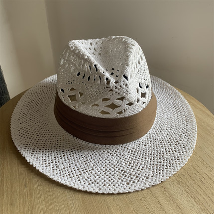 夏季白色礼帽镂空巴拿马草帽遮阳大沿防晒沙滩帽子女夏天爵士帽潮