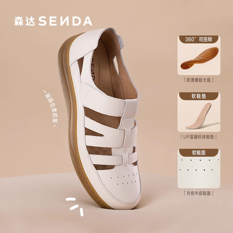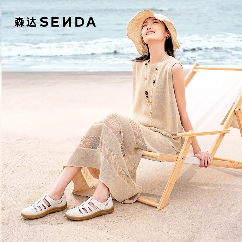 森达云朵可可罗马凉鞋真皮洞洞鞋
