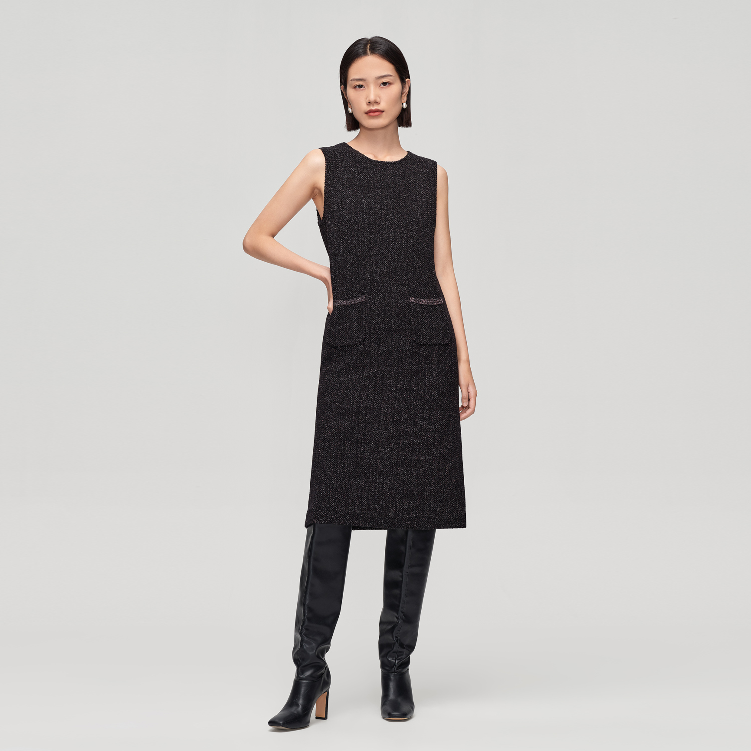 OVV秋冬新款女装黄金羊毛经典无袖针织连衣裙优雅小黑裙