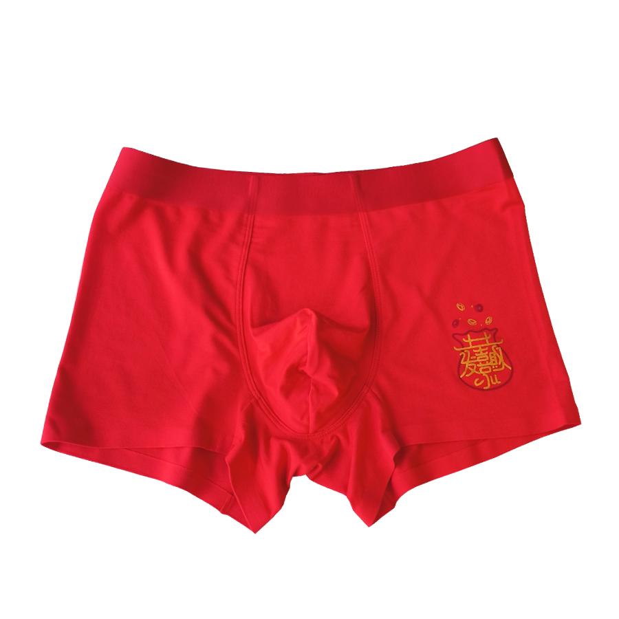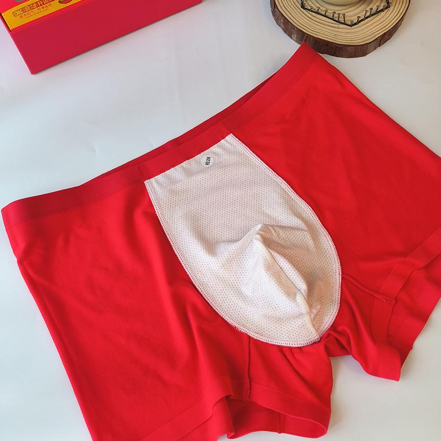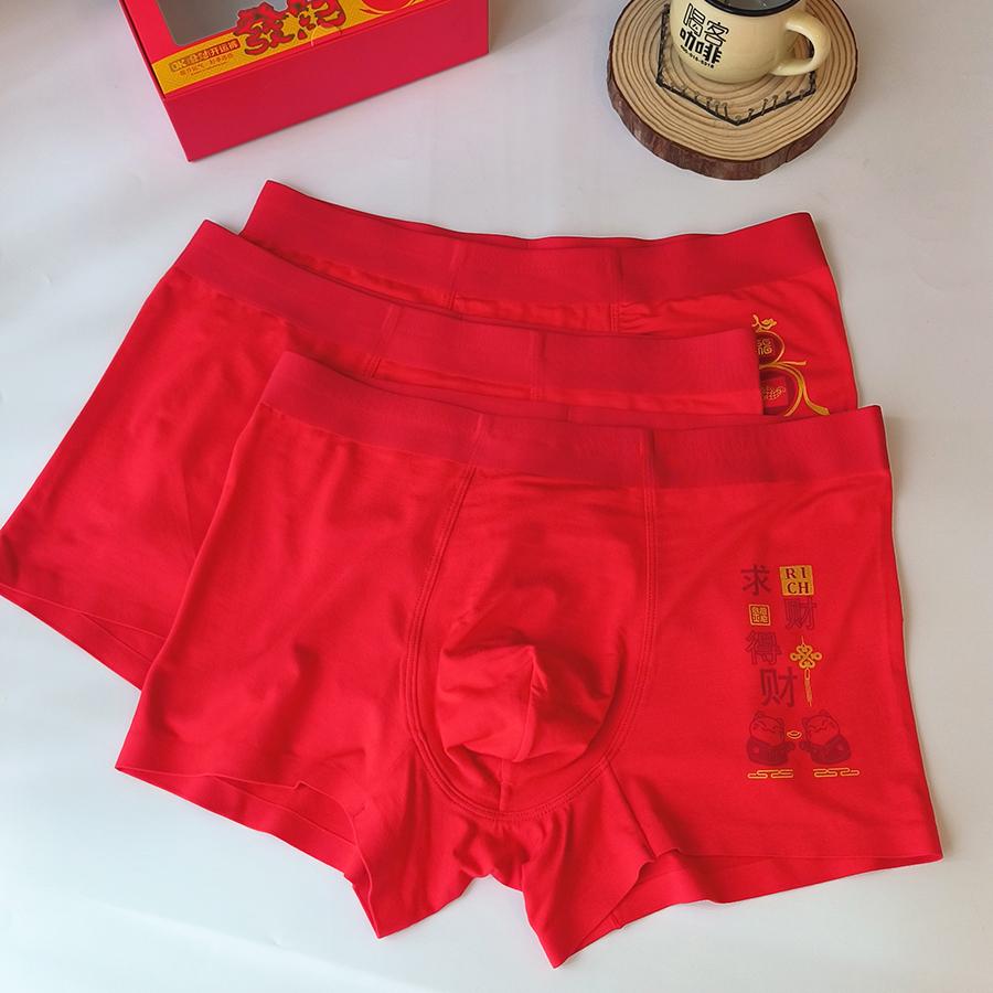 3条 新款朗奔男士大红色平角内裤莫代尔无痕结婚喜事本命年中国红