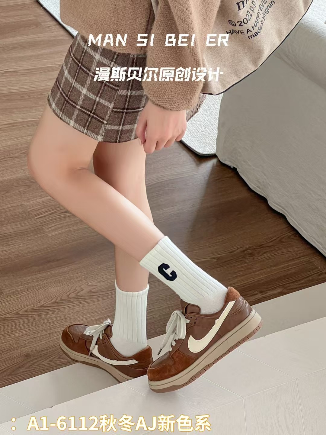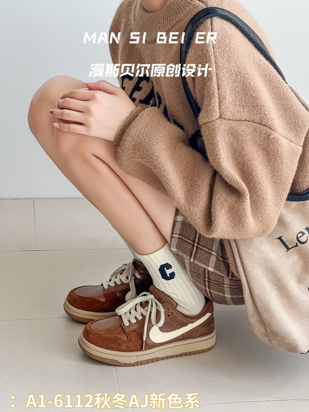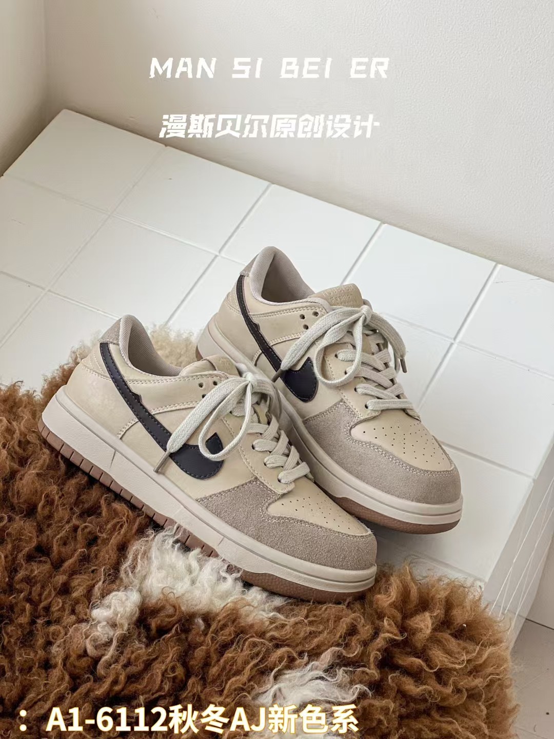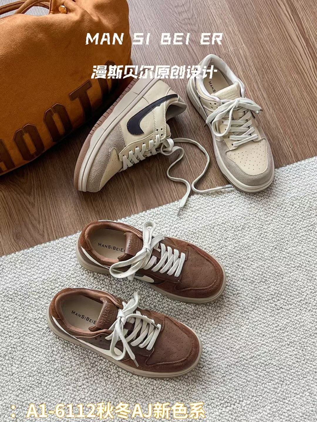 漫斯贝尔新款勾勾韩版低帮女鞋平底棕色运动休闲百搭板鞋