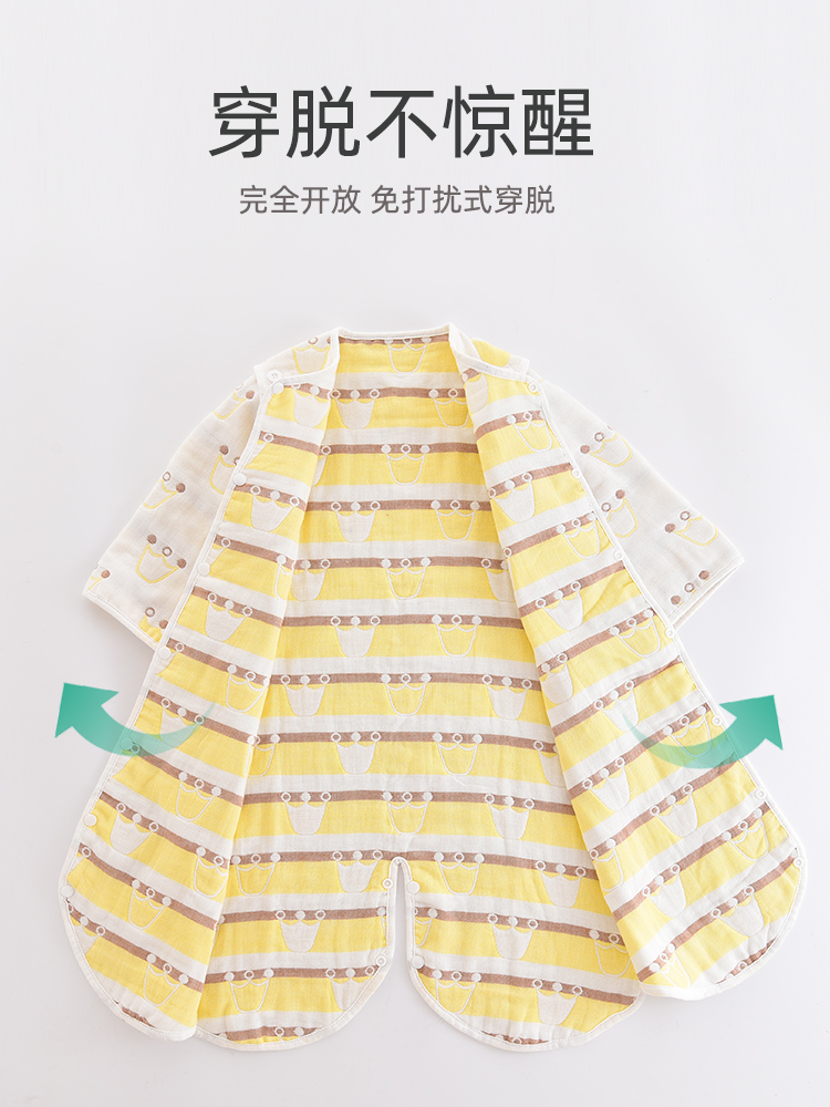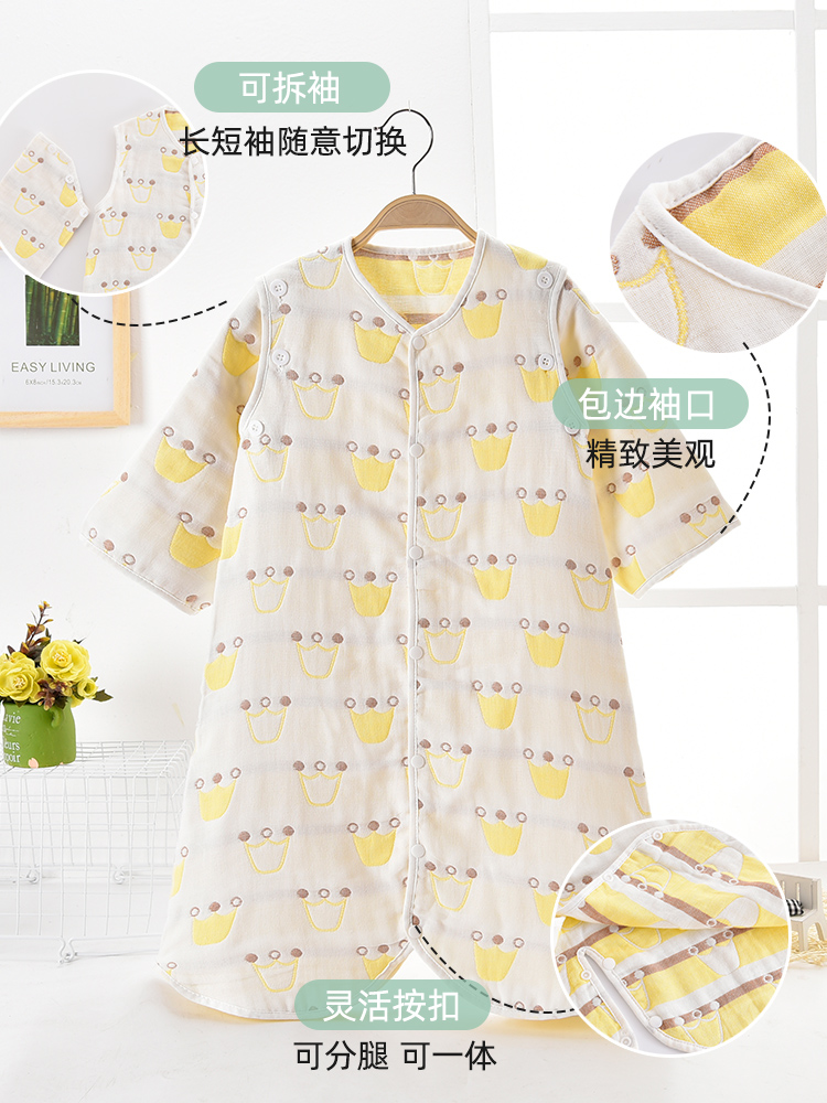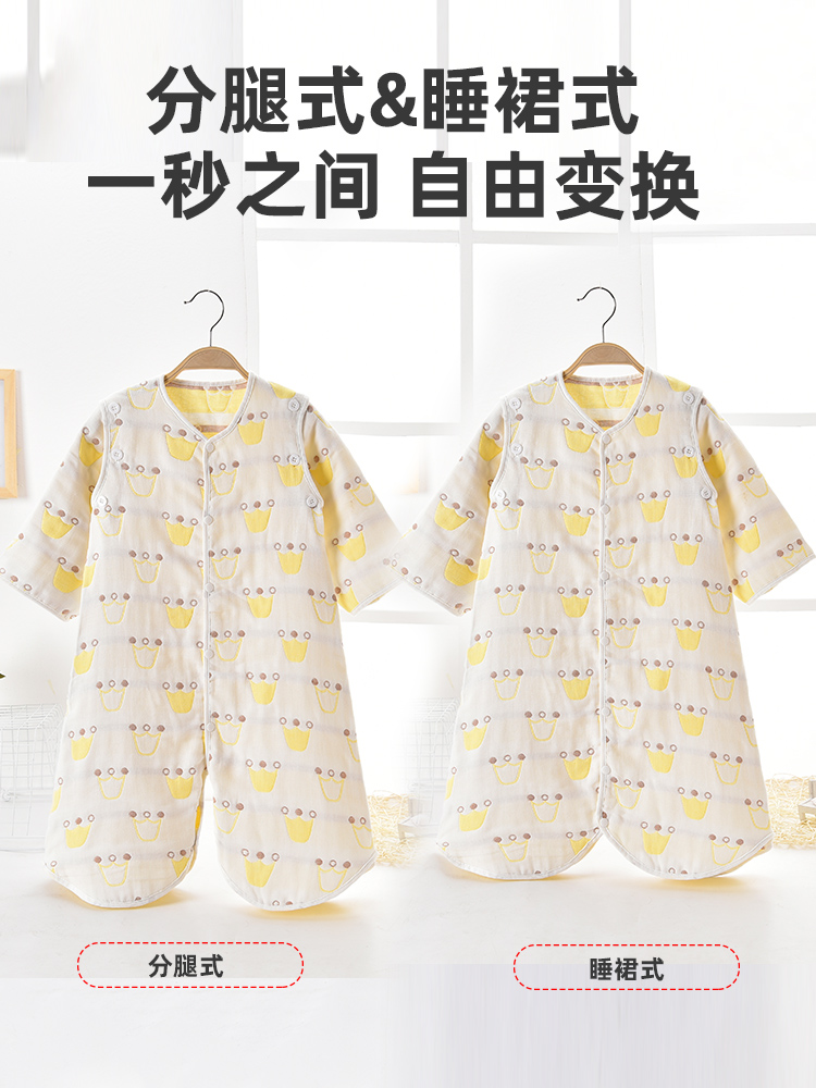 婴儿分腿睡袋春秋薄款宝宝睡袍纯棉46层纱布儿童夏季空调房防踢被