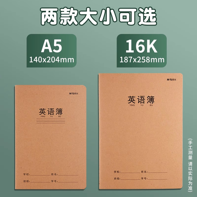 晨光16K英语簿大本加厚牛皮封面32k英语本a5三四六年级初中学生本
