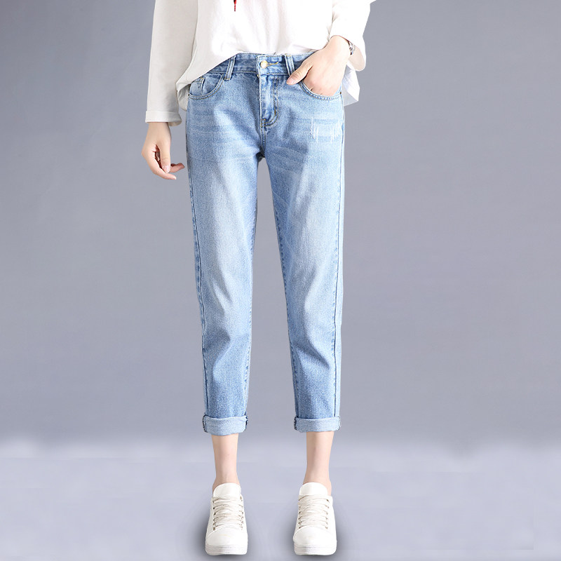 白色裤子破洞牛仔裤女直筒宽松哈伦2022新款夏季薄款九分裤老爹裤