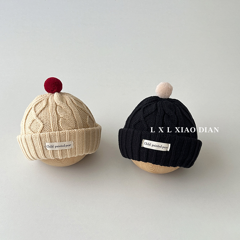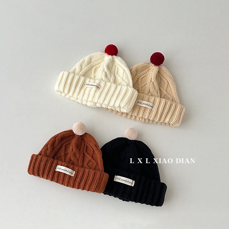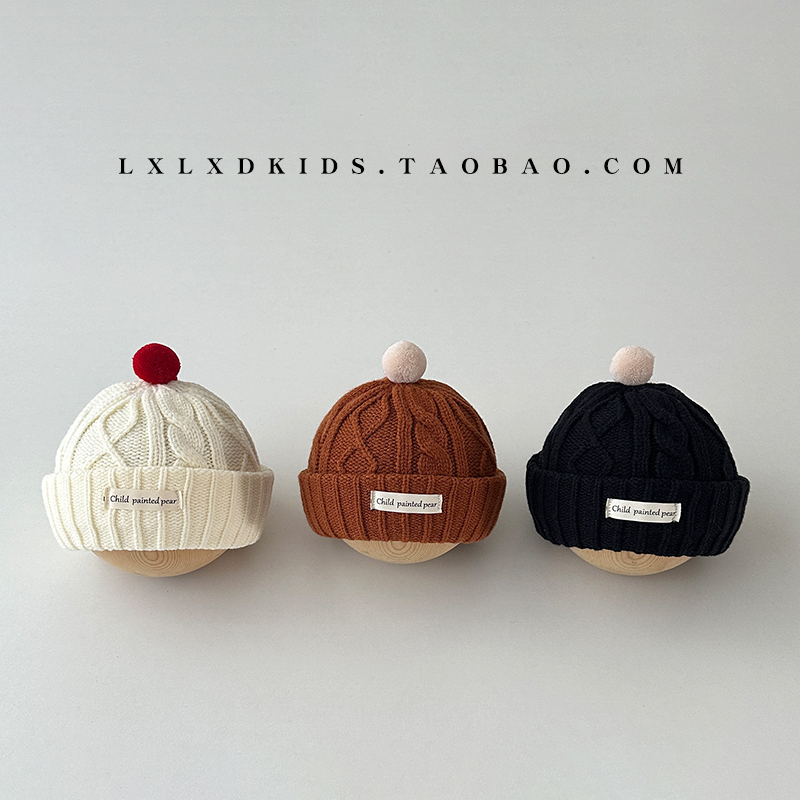 多色可选婴儿毛线帽秋冬季洋气毛球针织套头帽子男童女宝宝瓜皮帽
