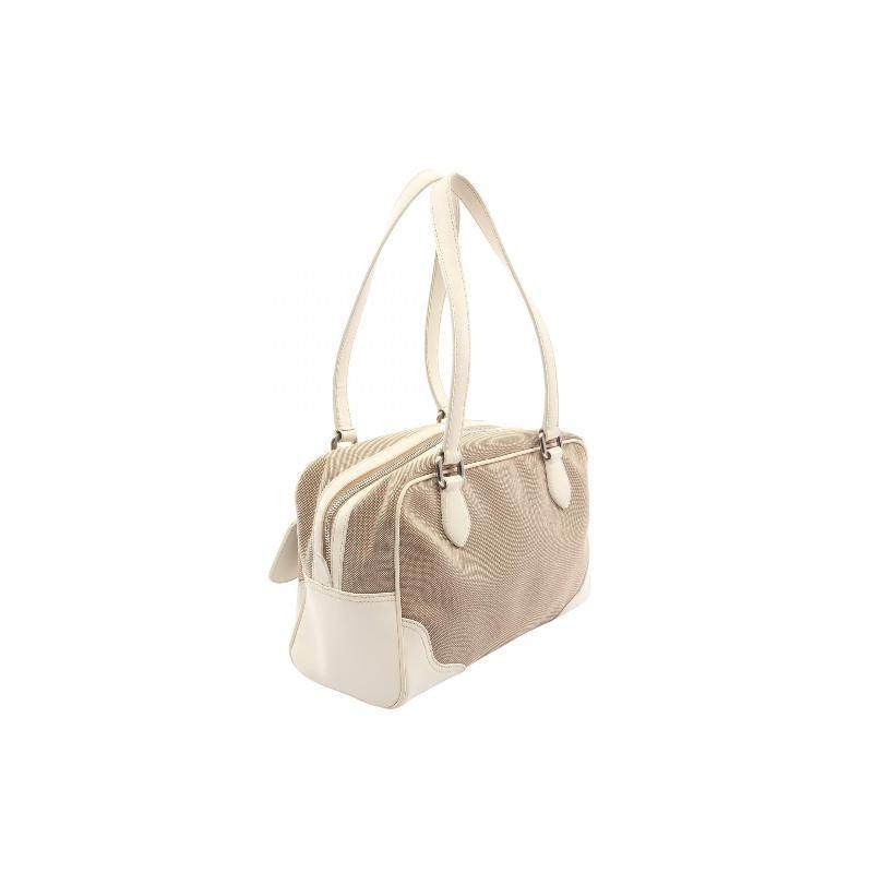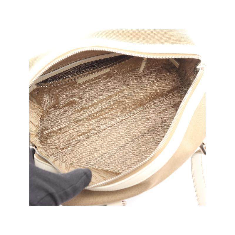 中古Prada普拉达女包B级9新shoulder bag斜挎包帆布手提包浅褐色