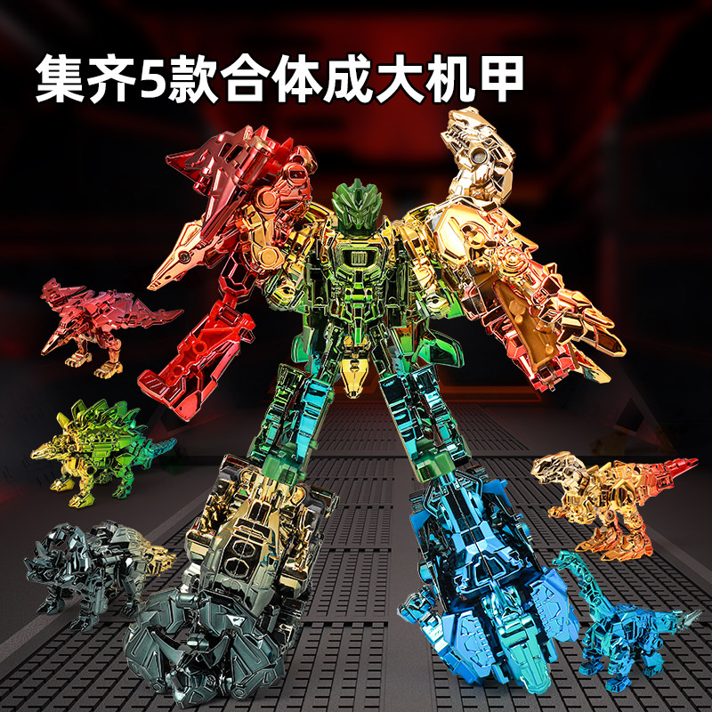 儿童炫彩变形玩具恐龙机器人合体霸王龙机甲金刚模型3岁6男孩礼物