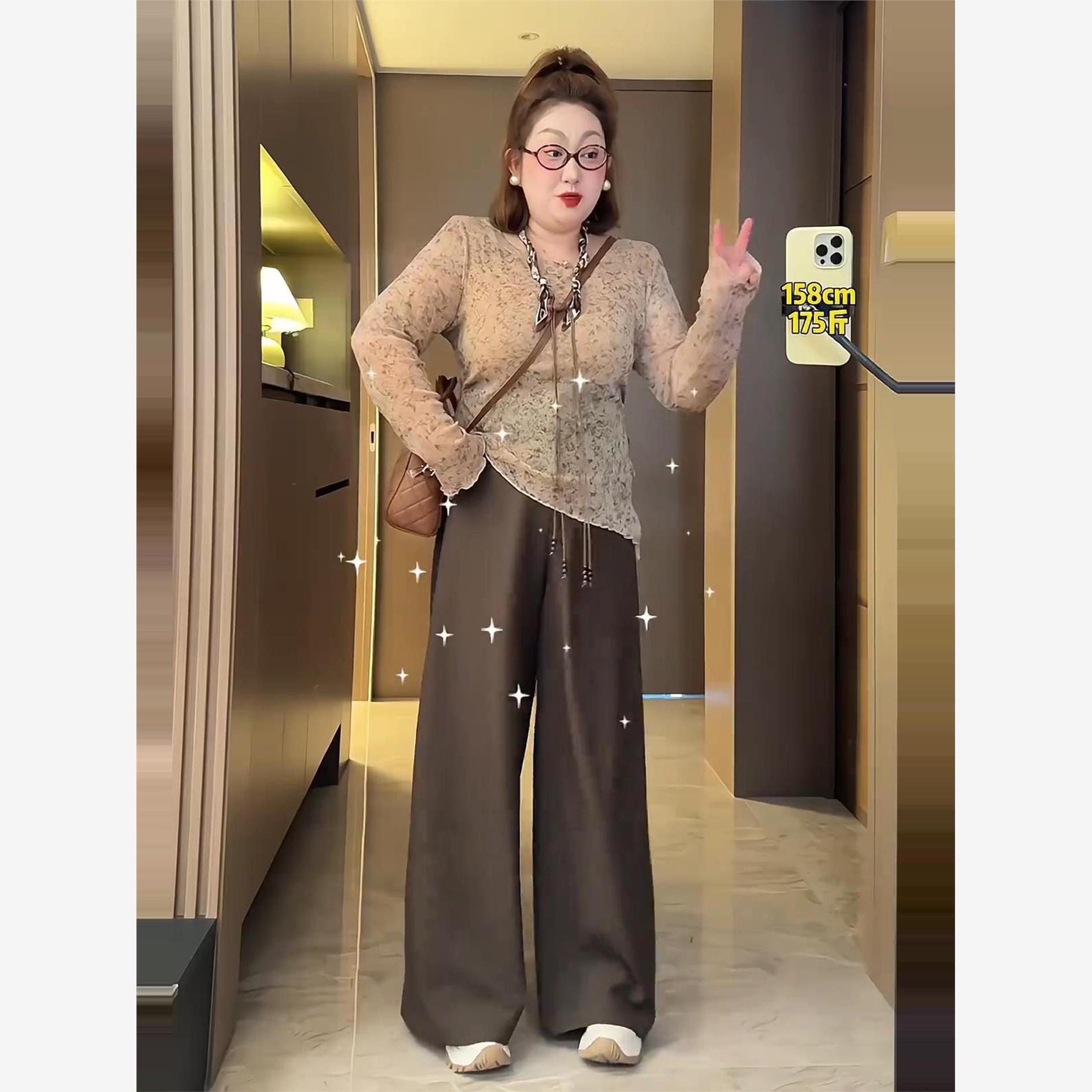 大码高腰气质休闲阔腿西装裤女春秋胖mm显瘦宽松弯刀裤垂感直筒裤