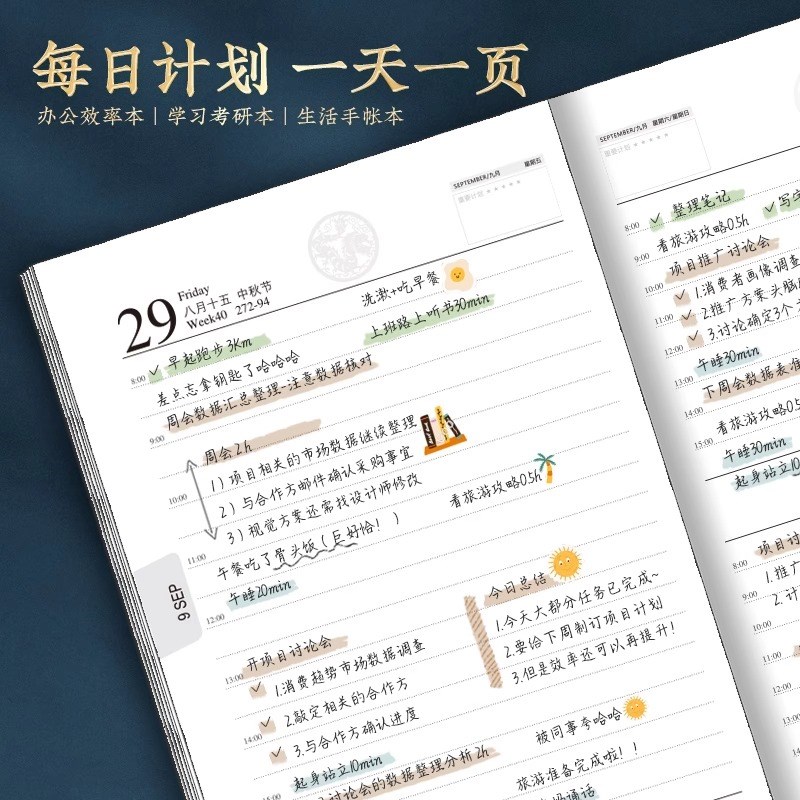 2024日程本皮面国潮笔记本子每日周计划表a5自律打卡工作小秘书定