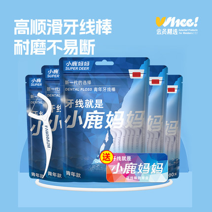 会员精选小鹿妈妈青年款牙线棒100支/袋*5袋(送随身盒)