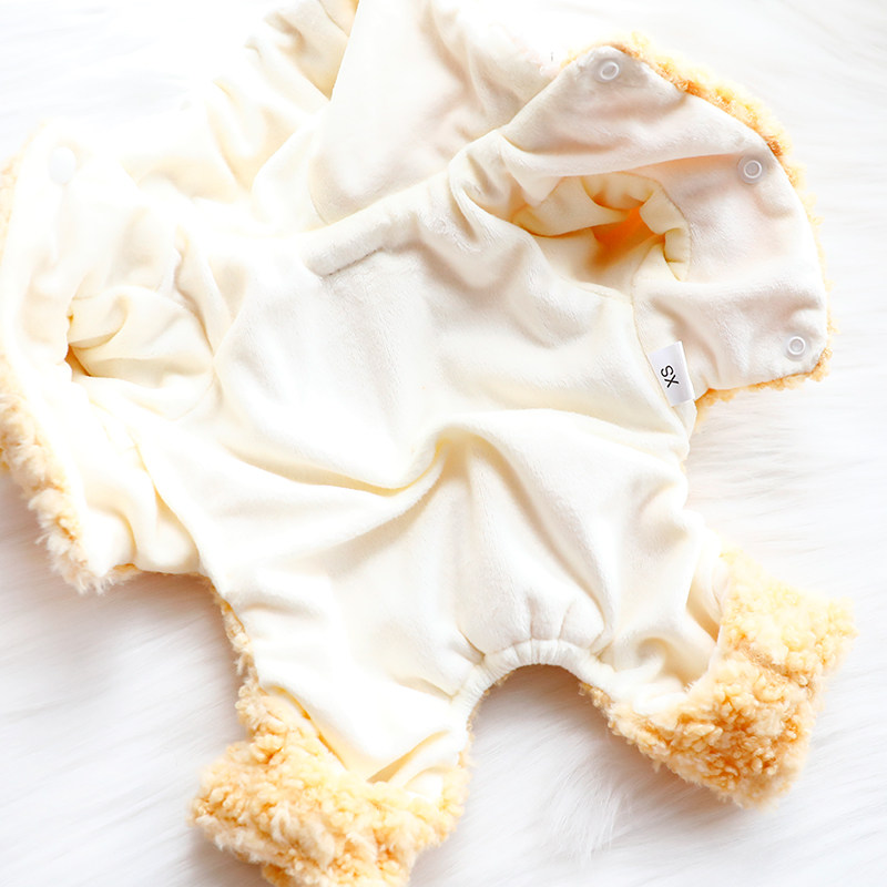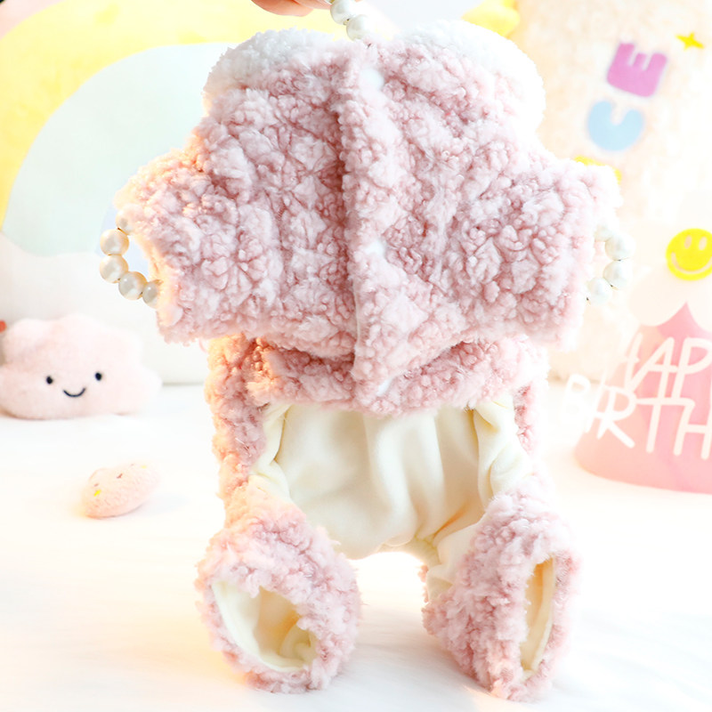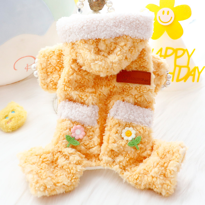 狗狗衣服秋冬装厚款绒绒花四脚棉衣可牵引带帽小型犬泰迪宠物5882