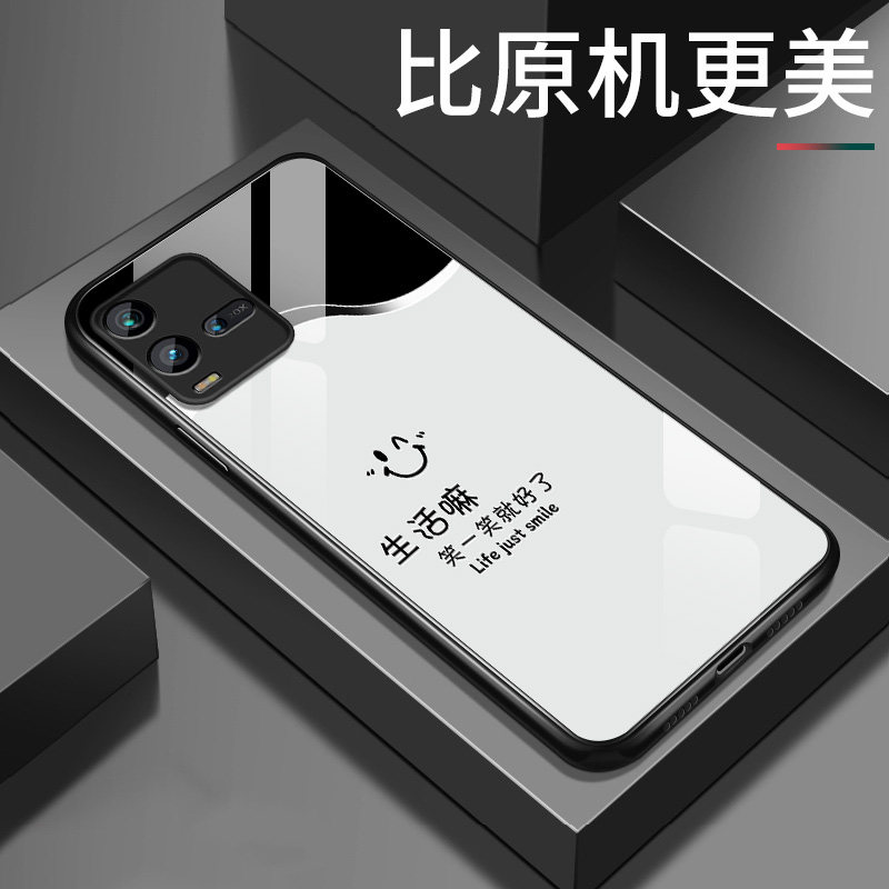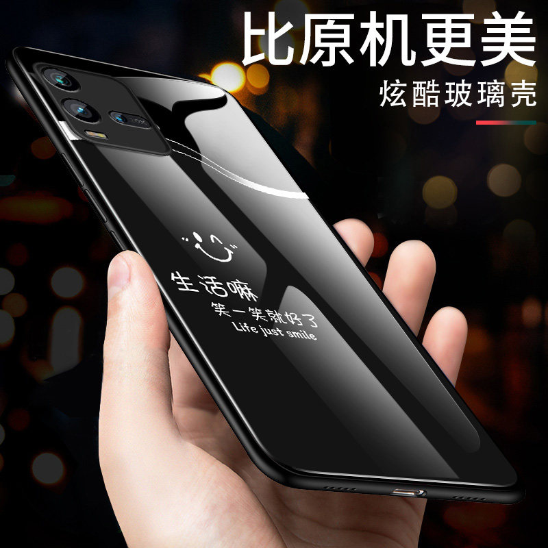 适用vivoiqoo11手机壳iqoo10简约高级情侣笑一笑iqoo11s玻璃硬壳保护套新款pro全包防摔软壳VIVO男款网红外壳