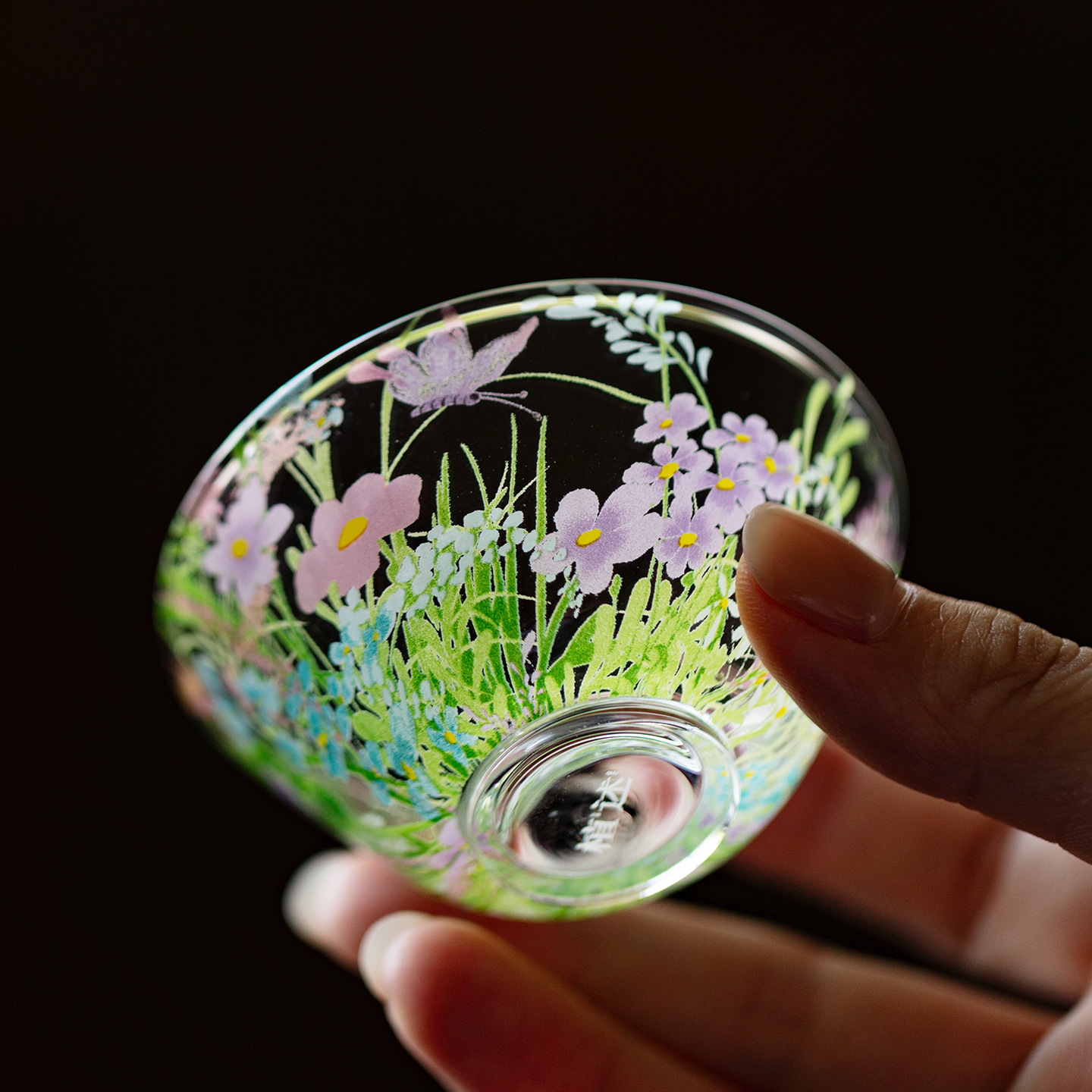 里作漫花高硼硅玻璃透明茶杯高颜值手工品茗杯家用功夫茶具主人杯