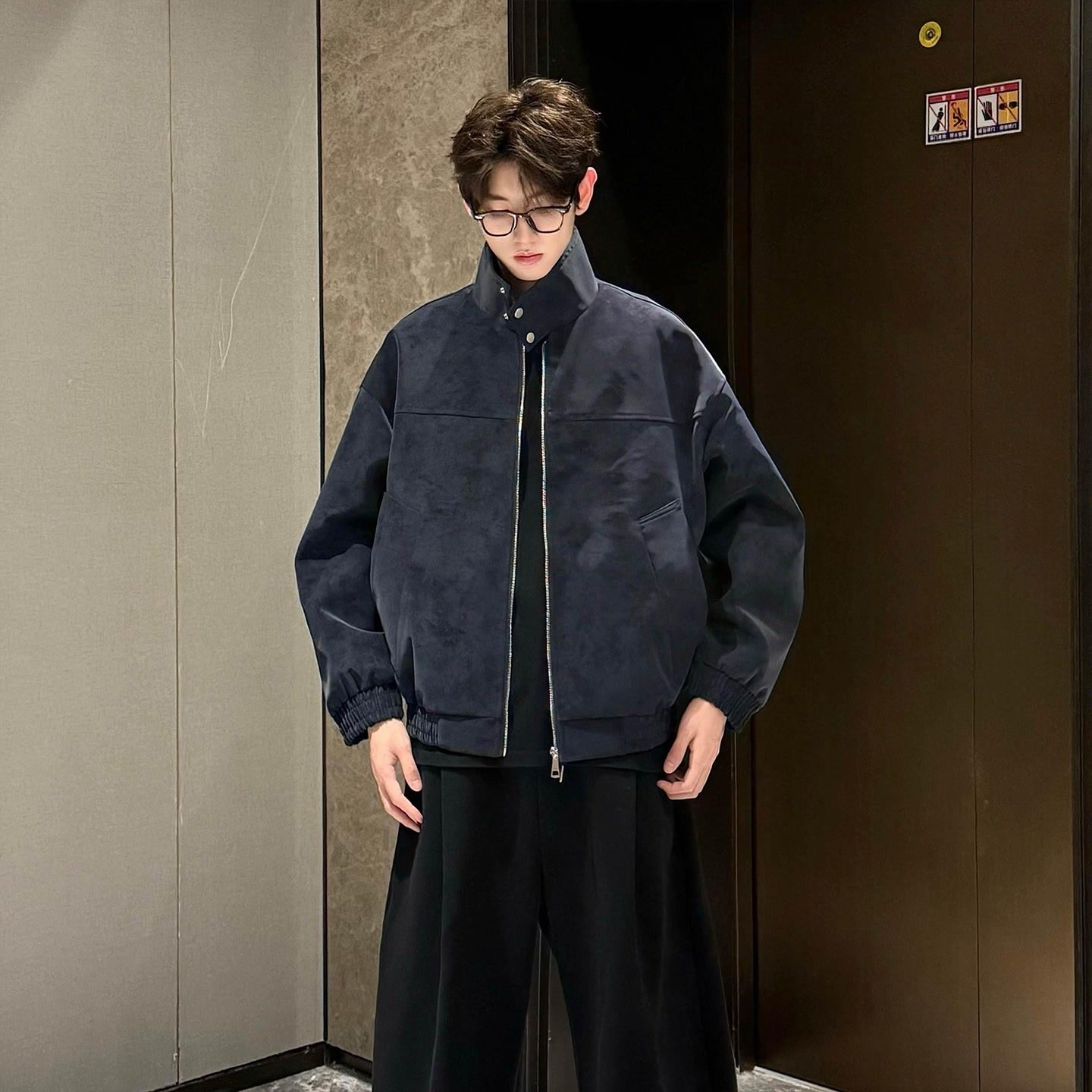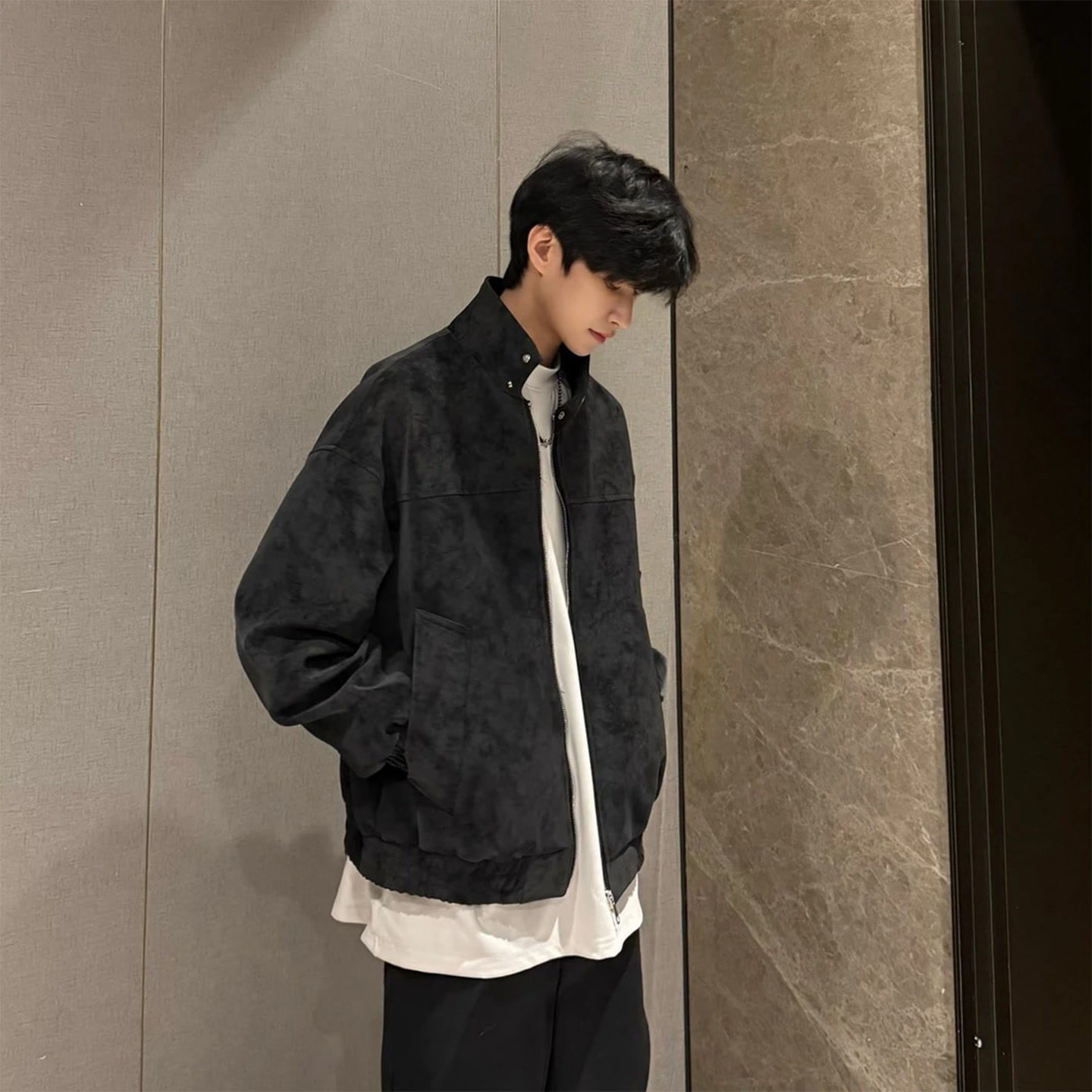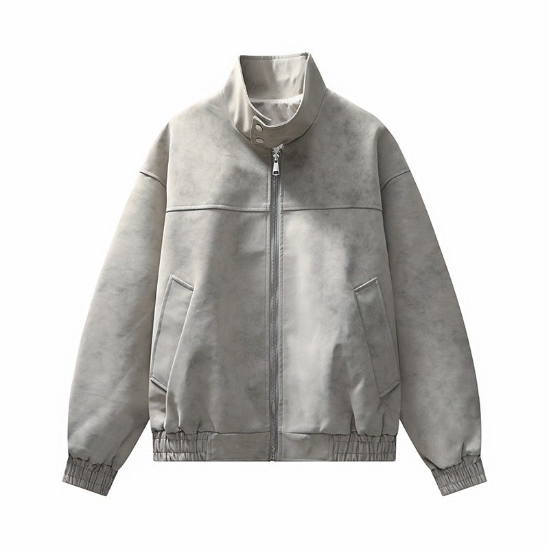阿叔潮牌 美式高街复古擦色立领皮衣外套男春秋百搭宽松休闲夹克