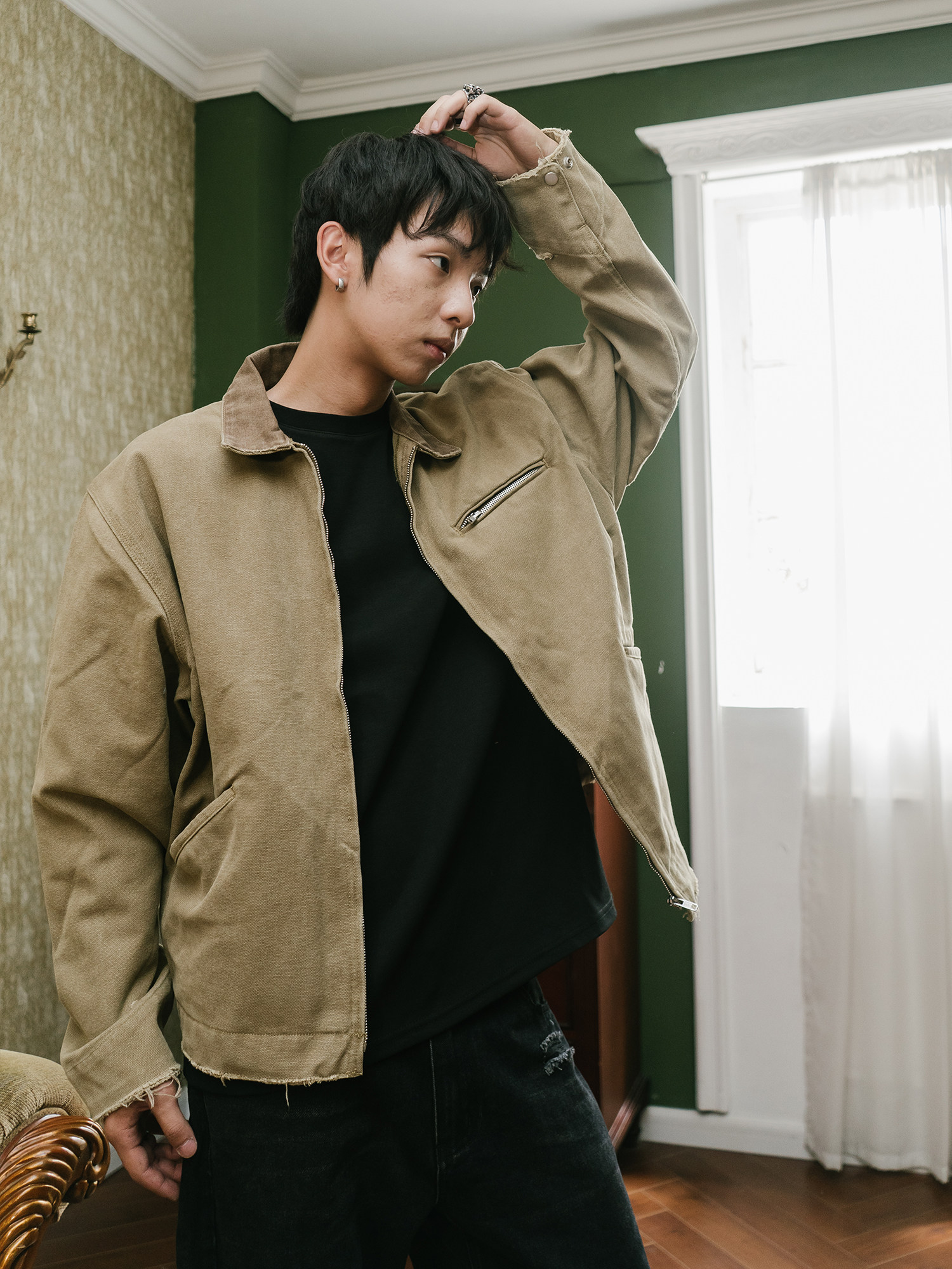 haonantadie/浩南他叠 底特律重磅工装珠帆布翻领J97夹克外套