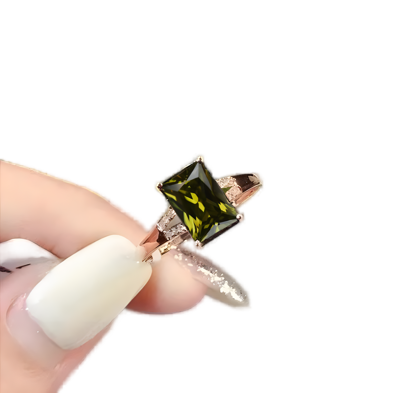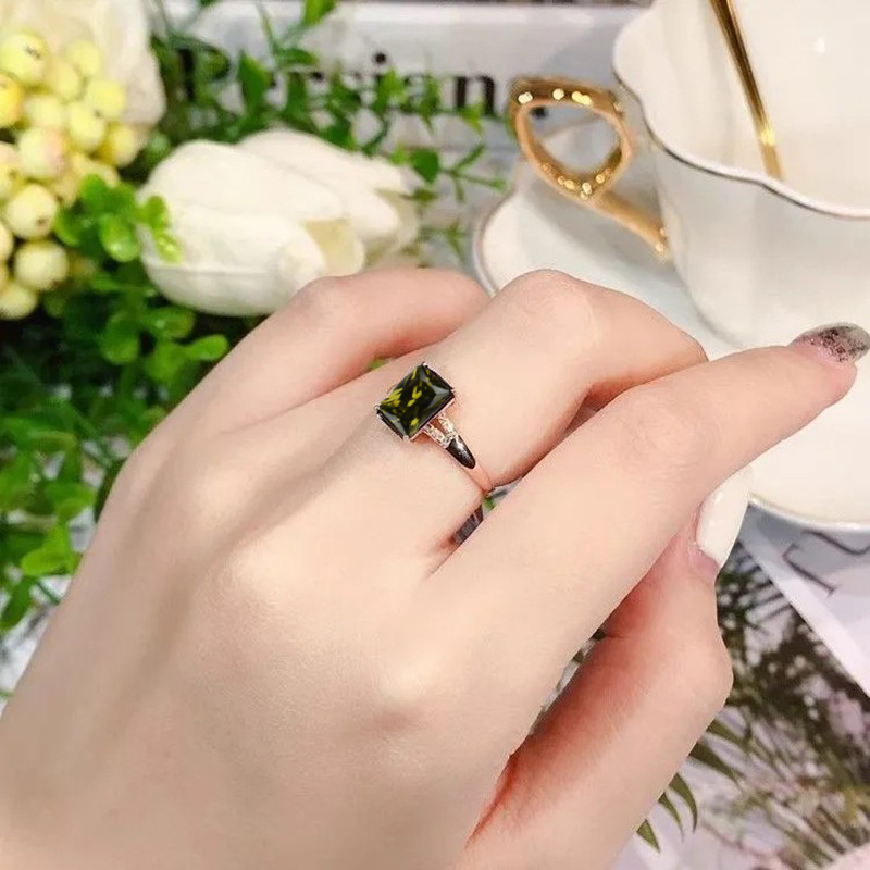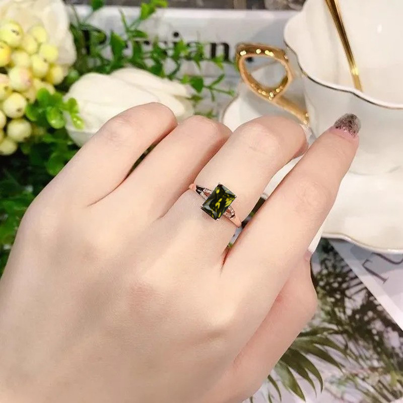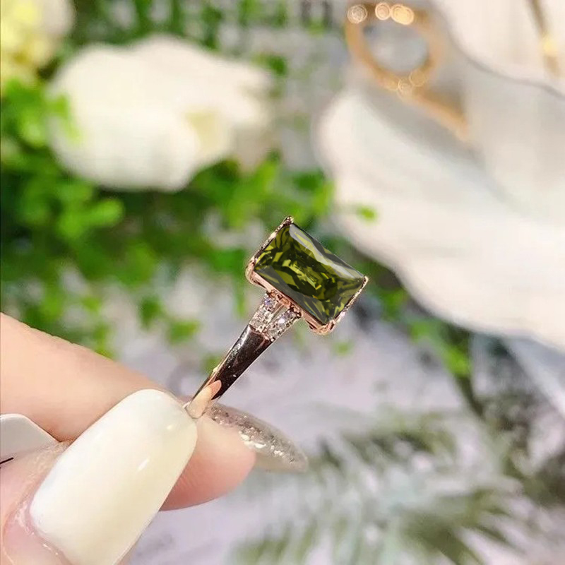 镀18K玫瑰金镶嵌绿碧玺橄榄石绿戒指女士轻奢时尚百搭高颜值气质