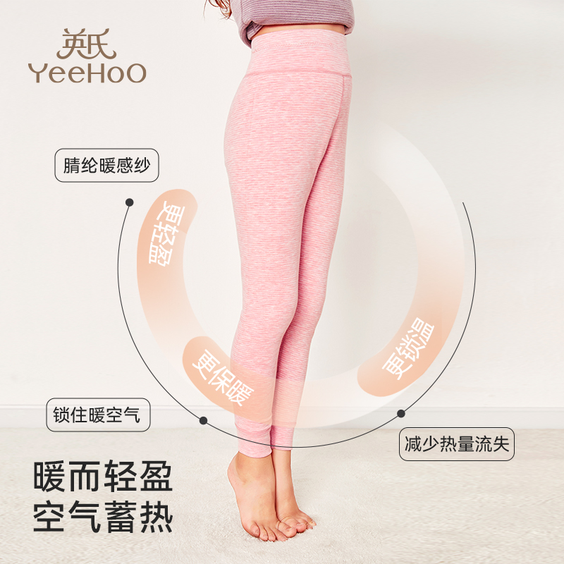 英氏女童加厚保暖裤2025冬季新款双层磨毛舒适A类高腰秋裤打底裤