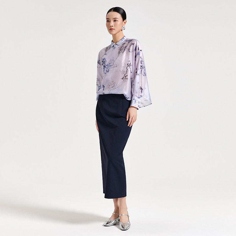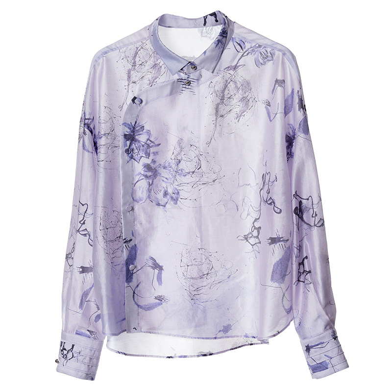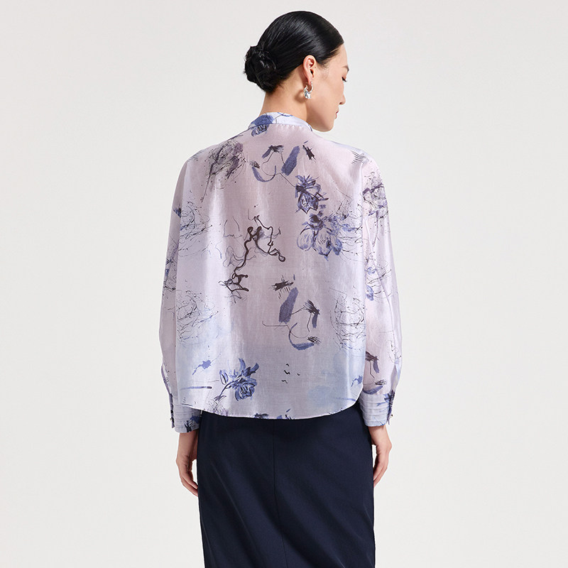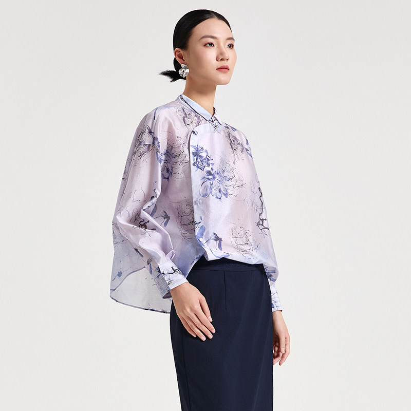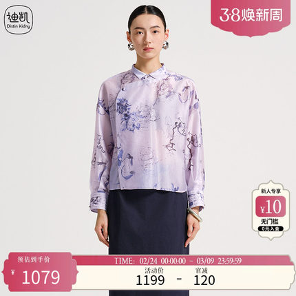 Distin Kidny/迪凯2025年春季新款新中式国风上衣女印花衬衫女