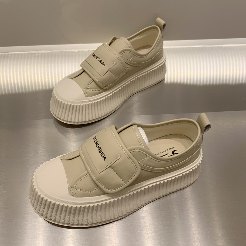 小白鞋女2025春新款真皮百搭厚底松糕跟魔术贴休闲饼干鞋面包板鞋