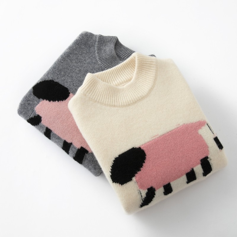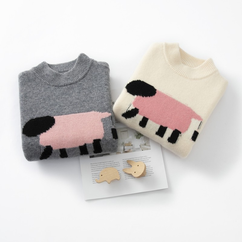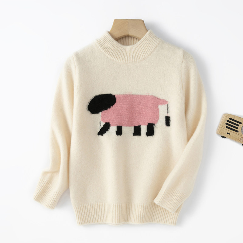 粉红小羊~儿童卡通提花羊毛衫女童韩版针织衫女宝可爱内搭毛衣