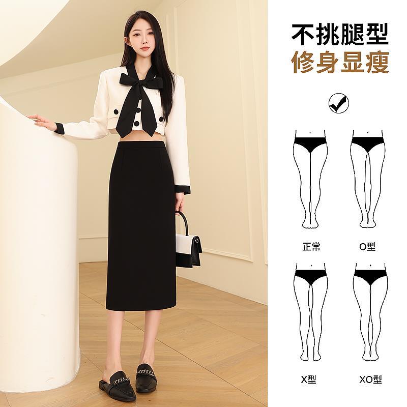 西装半身裙女春秋2024新款直筒包臀一步裙开叉职业正装黑色中长裙