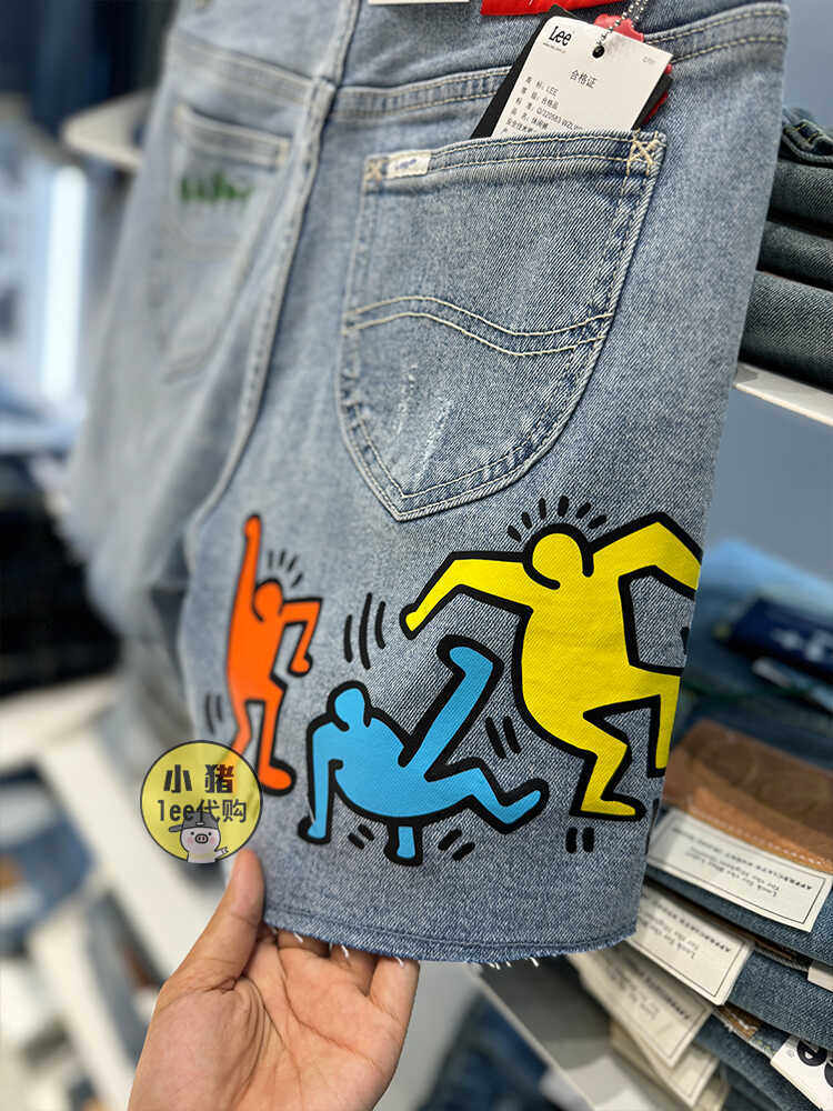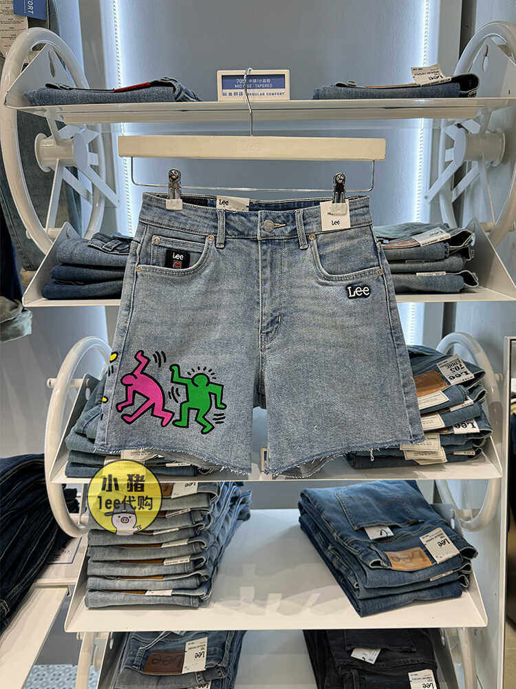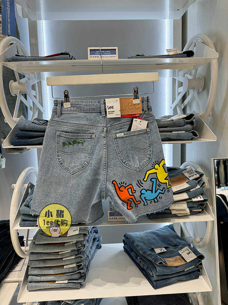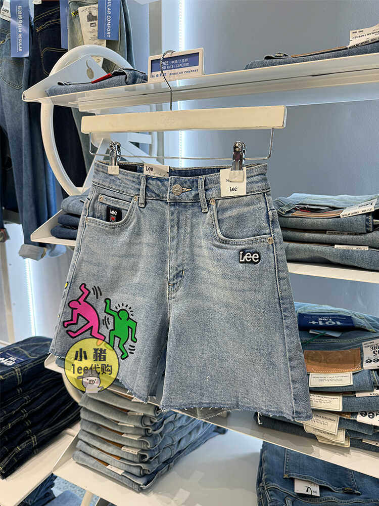 Lee女装牛仔短裤印花联名高腰显瘦百搭浅蓝裤子夏天L436536BXBNR
