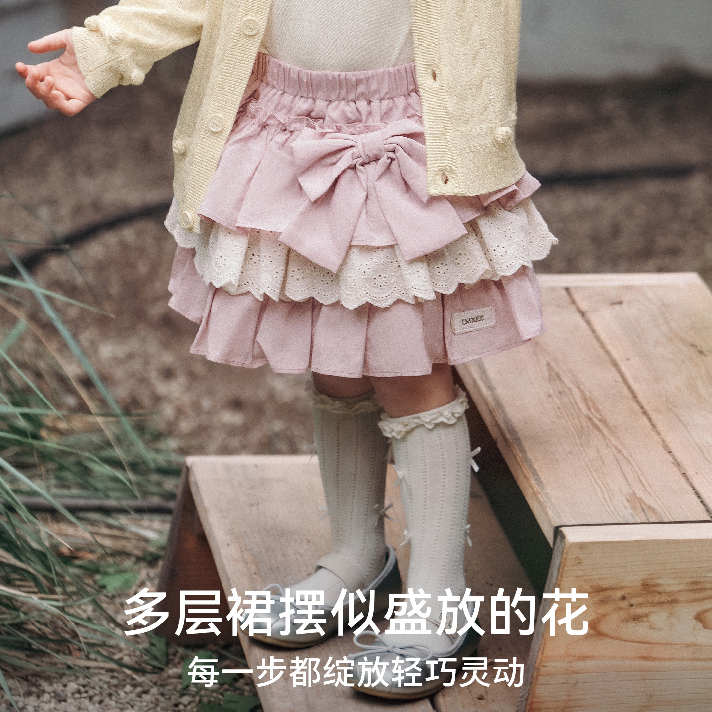 嫚熙童装儿童半身裙秋季女童公主裙女宝百褶裙百搭短裙甜美花苞裙