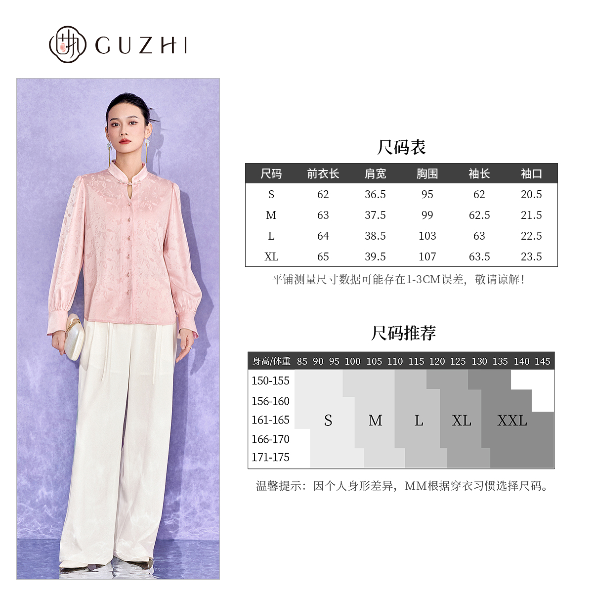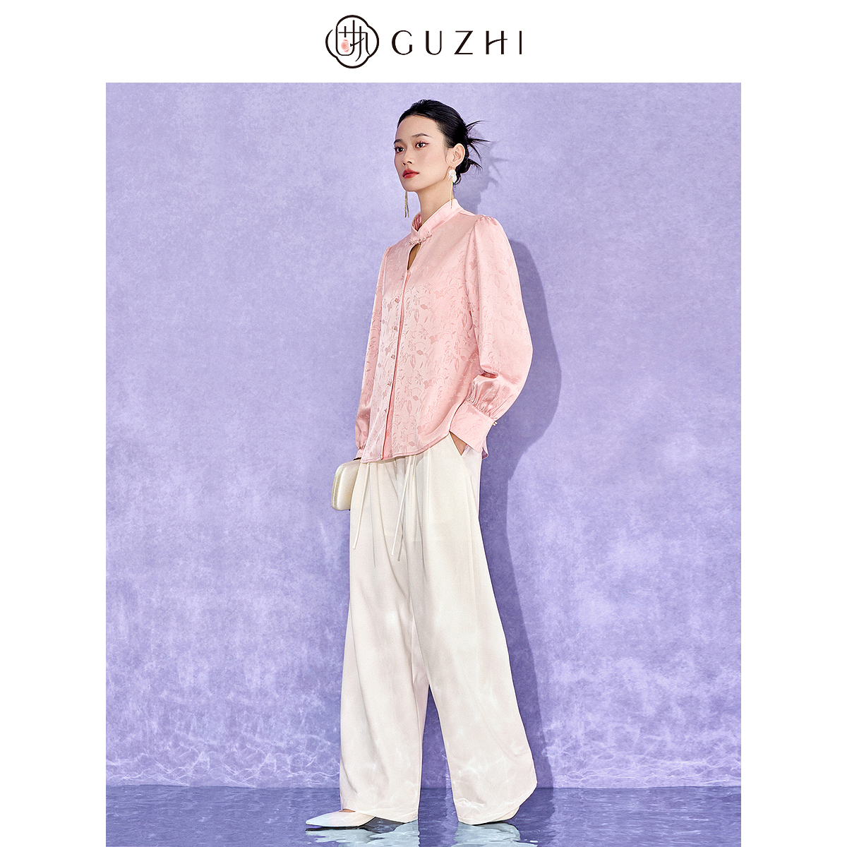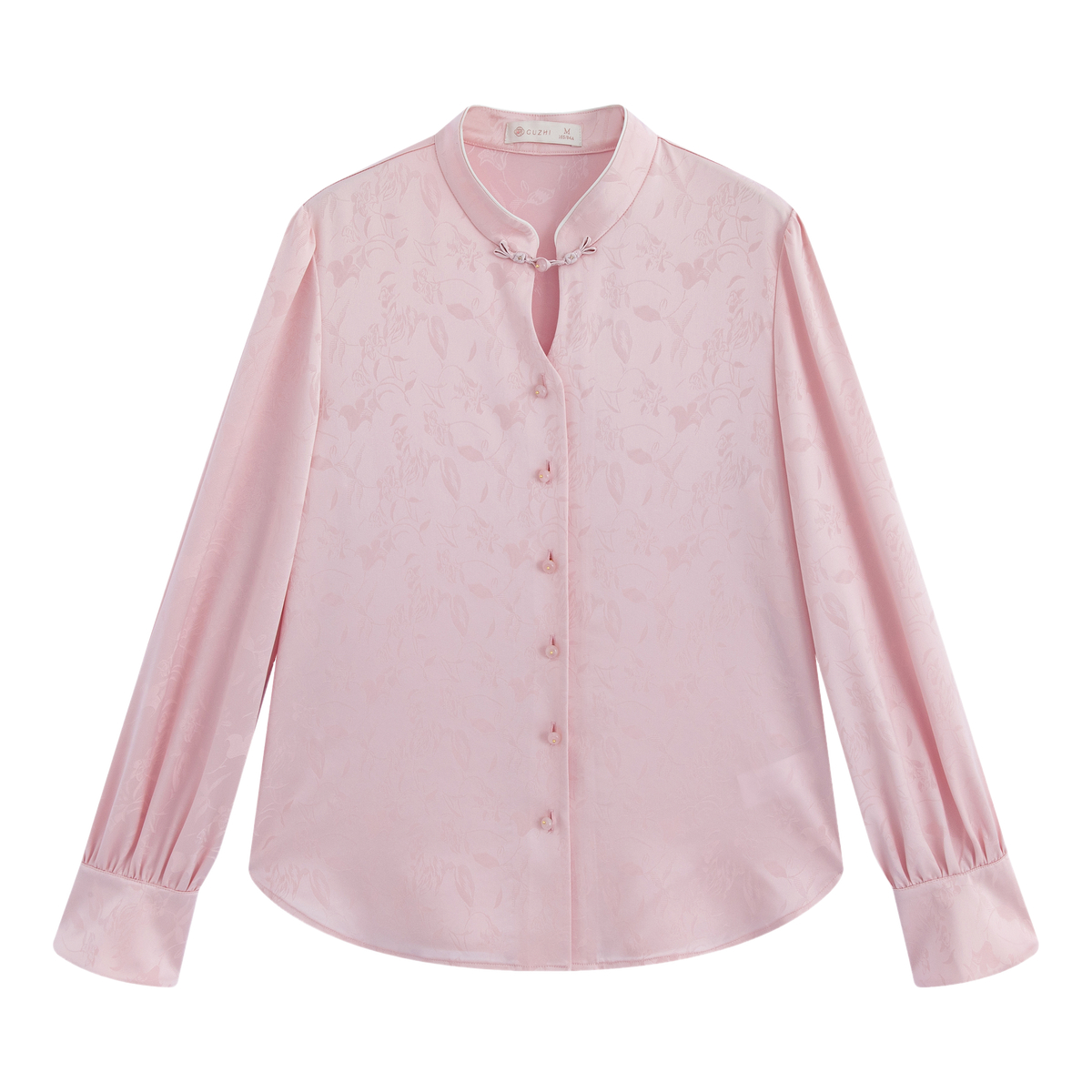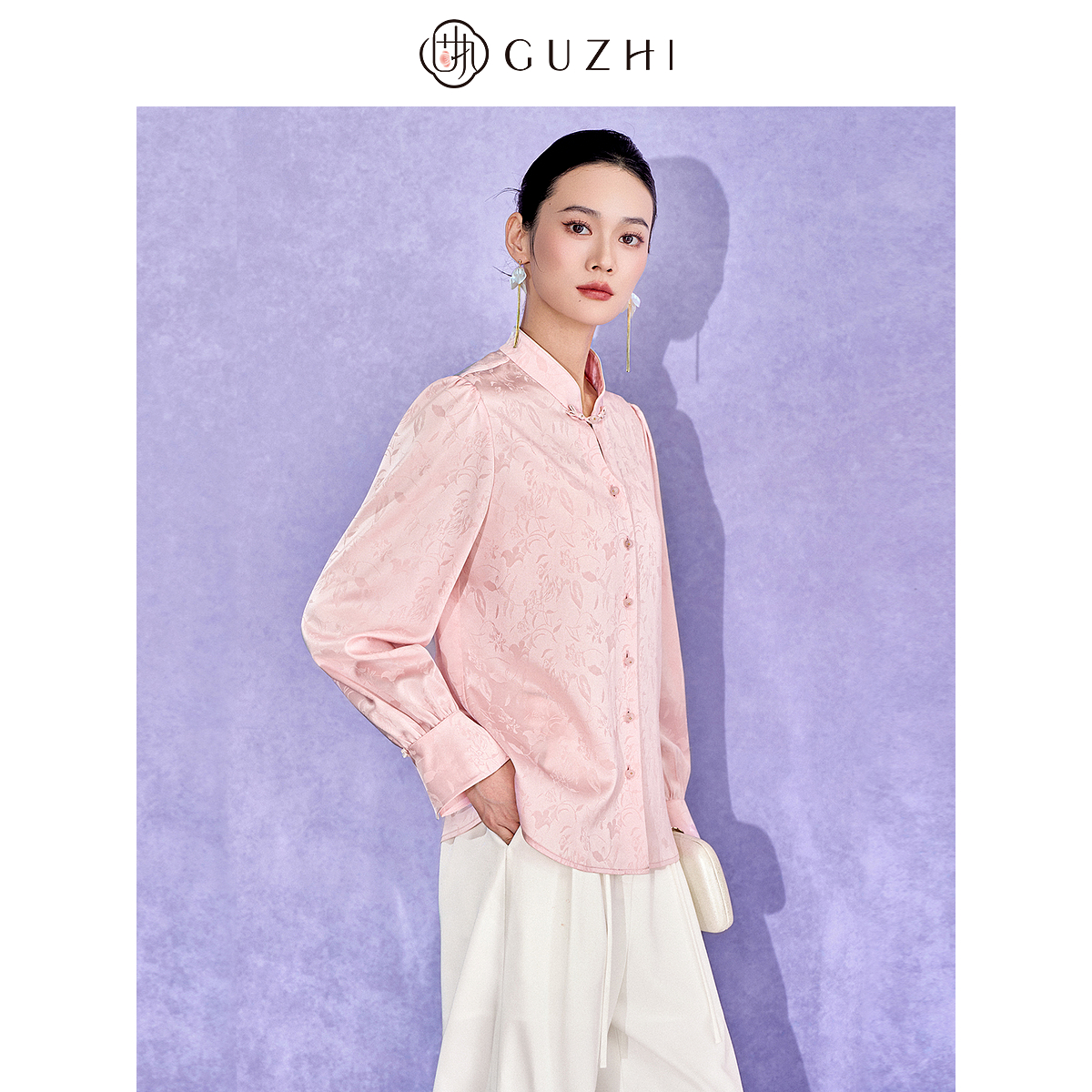 固执2025秋季新款新中式立领提花泡泡袖短款长袖衬衫女上衣