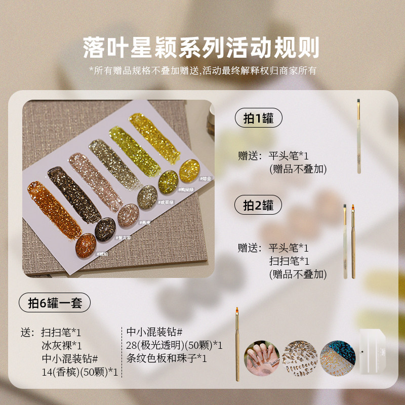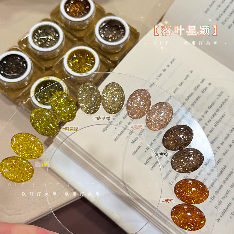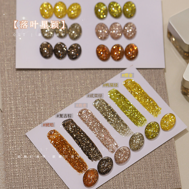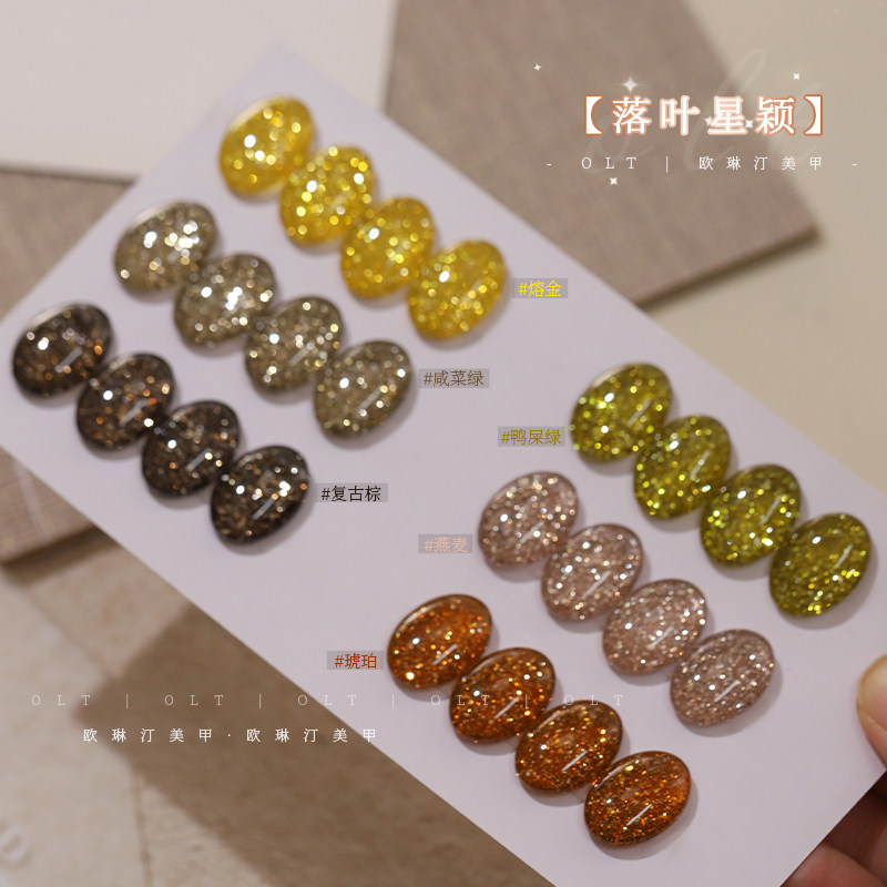 欧琳汀美甲落叶星颖甲油胶系列网红流行超闪爆亮指甲专用光疗胶