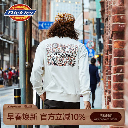 Dickies帝酷适26春秋男女情侣圆领背后印花毛圈内里休闲美式卫衣J