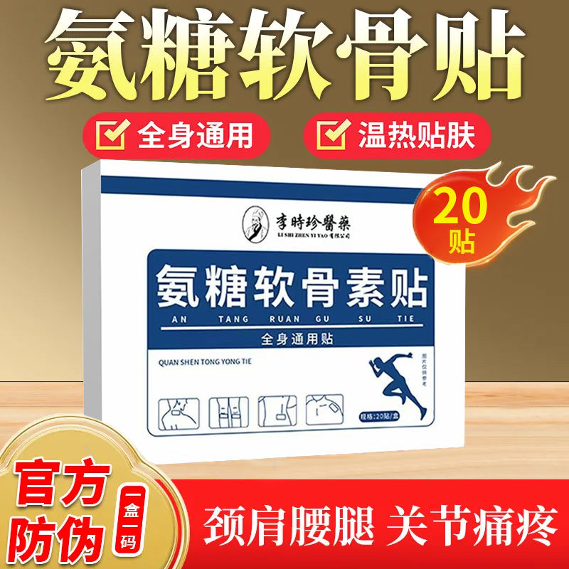 【一盒20贴】李时珍氨糖软骨素贴透骨软骨贴颈椎腰椎膝盖关节贴