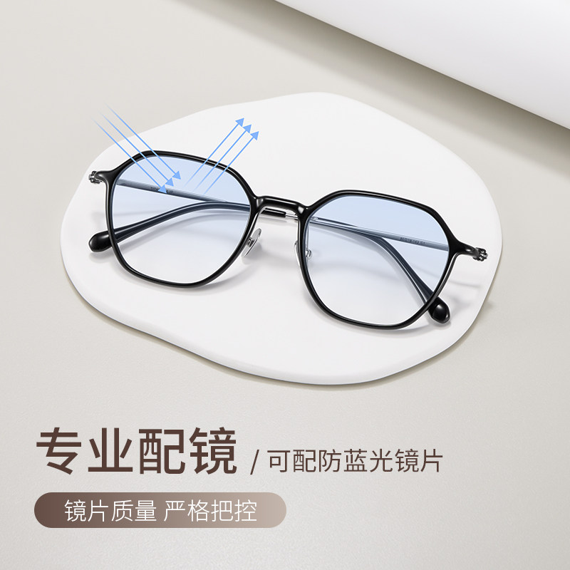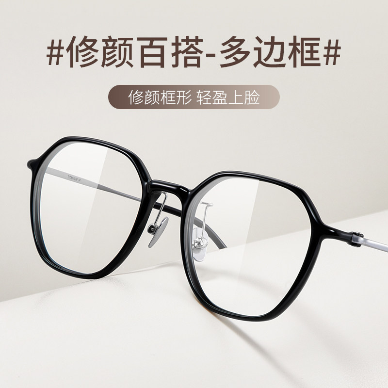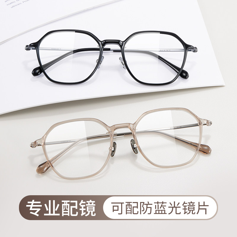 久森超轻近视眼镜女可配高度数显脸小纯钛素颜神器冷茶色镜架9106